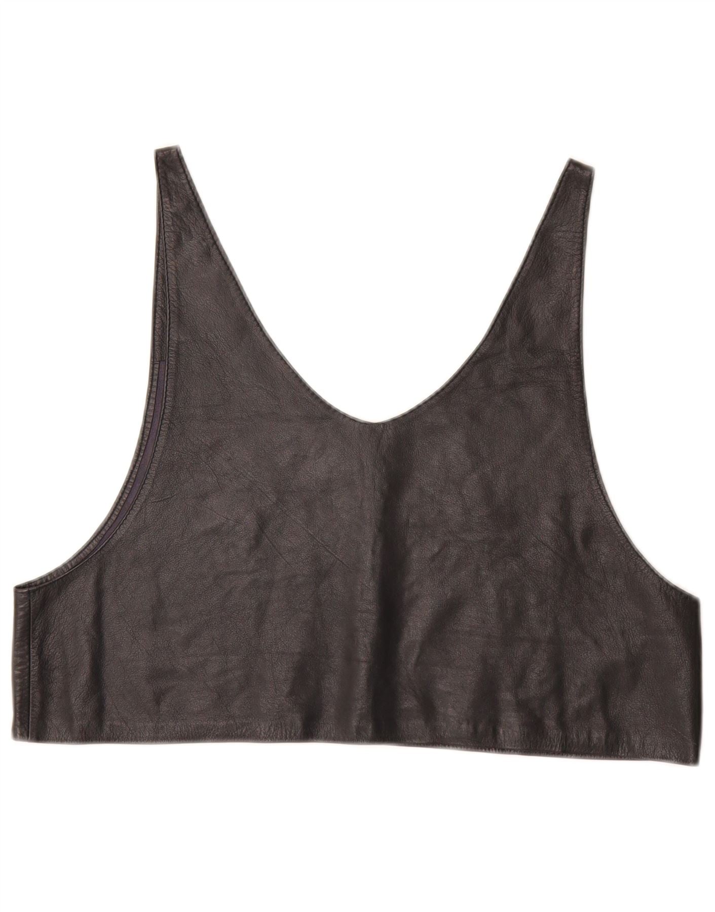 Top corto in pelle da donna VINTAGE UK 12 medio nero