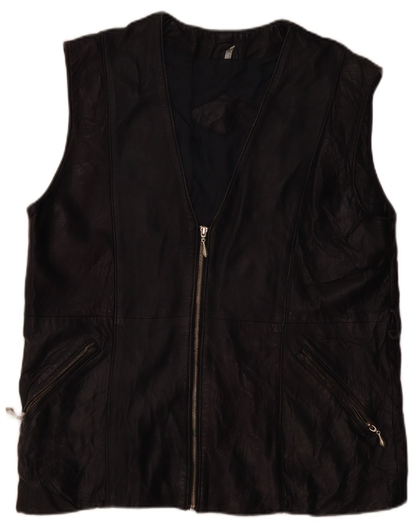 Gilet in pelle da donna VINTAGE UK 16 grande nero