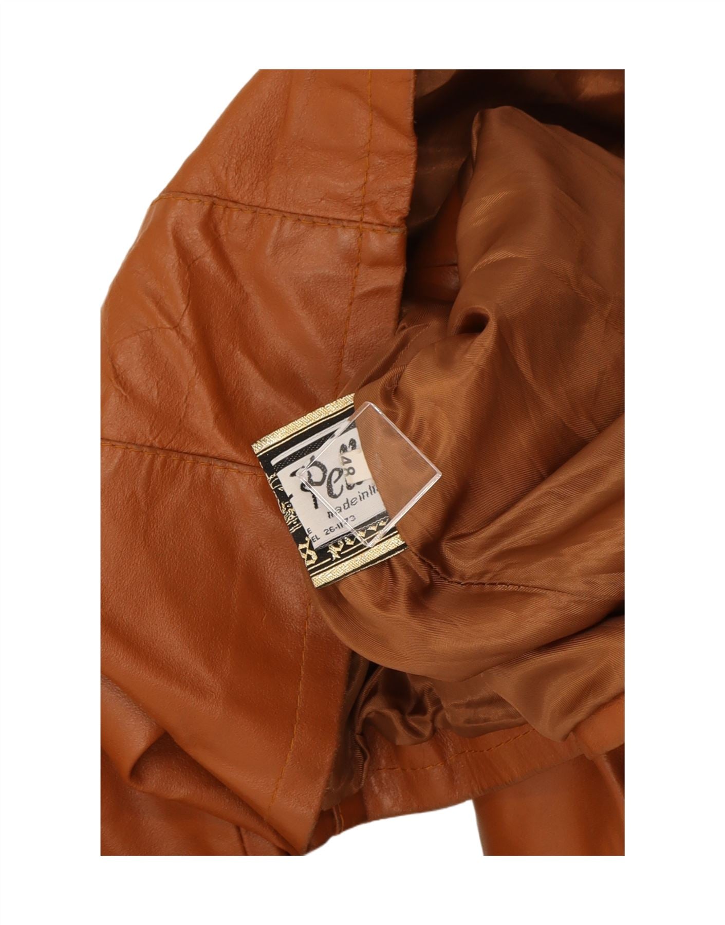 - AI Description: Vintage brown leather biker jacket in good pre-owned condition. This women's regular fit jacket features long sleeves, a collared neckline, and a zip closure. Includes zipped pockets, is fully lined and made from quality leather. Minor visible wear overall and minor stains on the back collar and inside. A classic and stylish leather jacket.