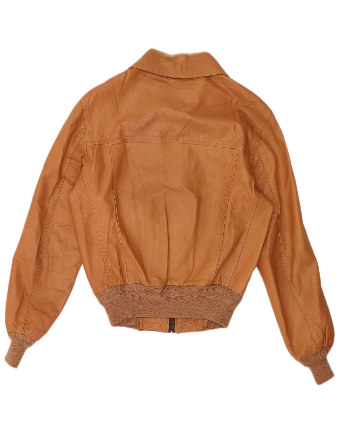 - Descrizione dell'IA: Questo bomber da donna vintage è realizzato in ricca pelle marrone, che offre una consistenza liscia ma elastica. Presenta uno scollo classico con colletto e una chiusura full zip. Le maniche lunghe terminano con polsini a coste, abbinati all'orlo a coste. La vestibilità regolare offre una vestibilità comoda. Sono incluse pratiche tasche. La giacca è completamente foderata per maggiore comfort e calore, incarnando uno stile retrò senza tempo.