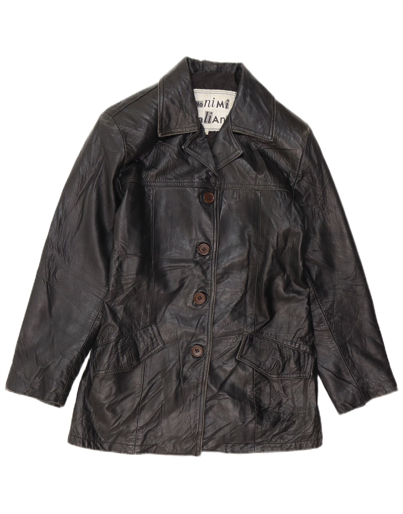 Giacca in pelle da donna VINTAGE UK 10 piccola pelle nera