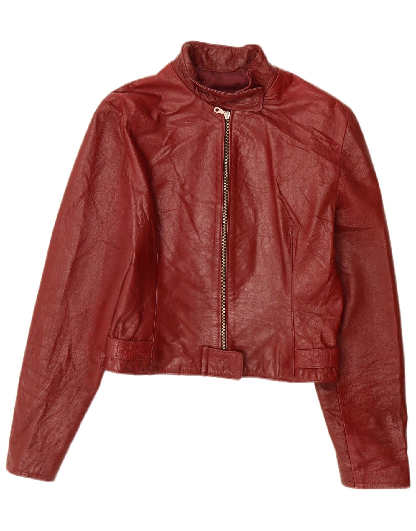 Giacca in pelle da donna VINTAGE UK 10 Piccola pelle bordeaux