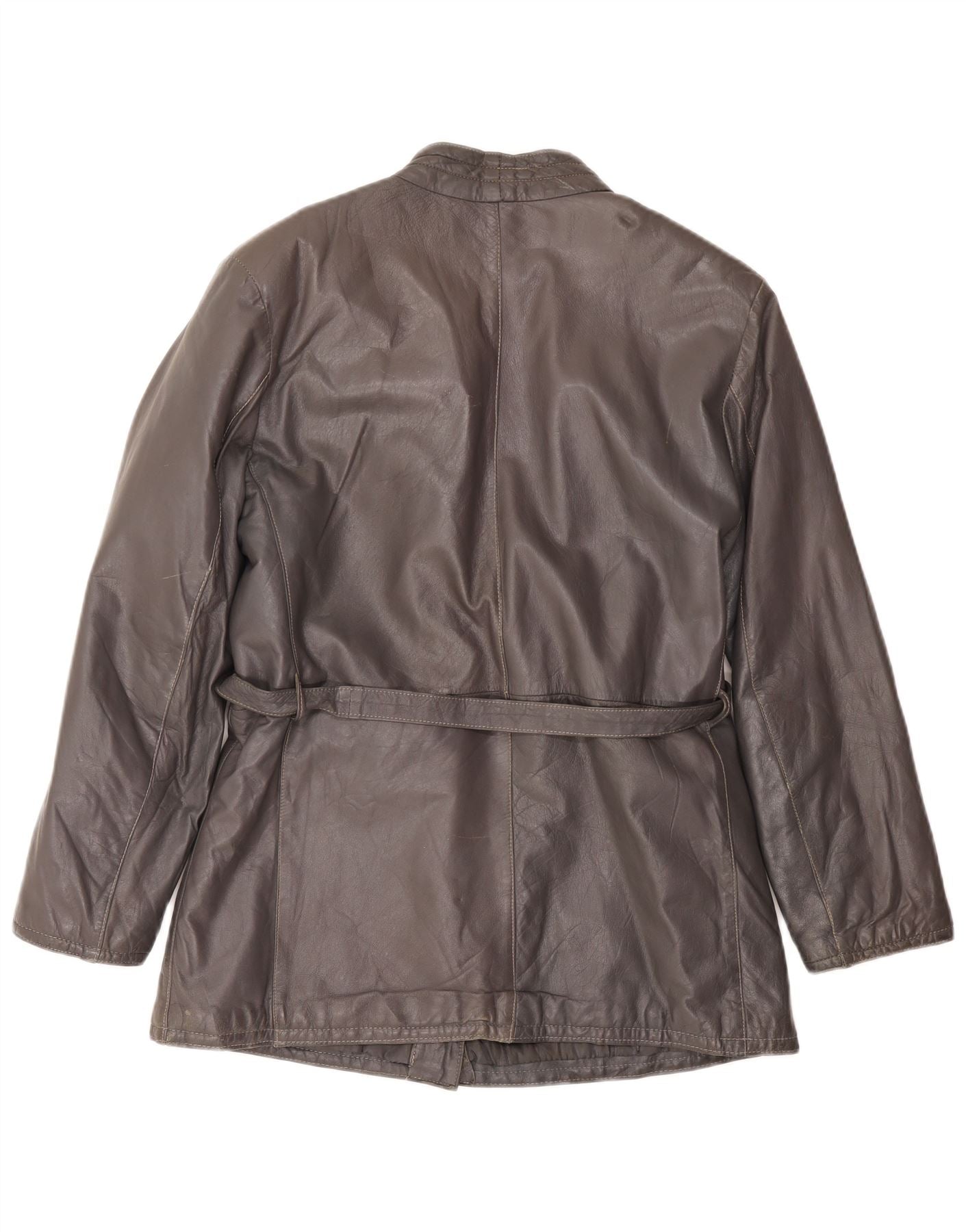 Giacca in pelle vintage da donna UK 16 grande grigia