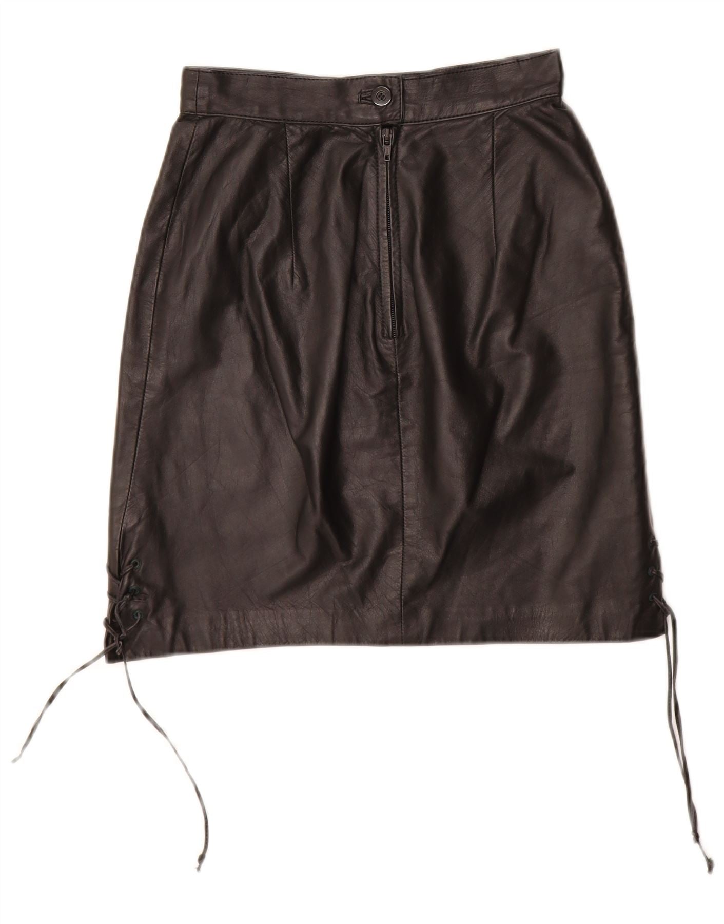 Gonna in pelle da donna VINTAGE EU 34 XS W24 Pelle nera