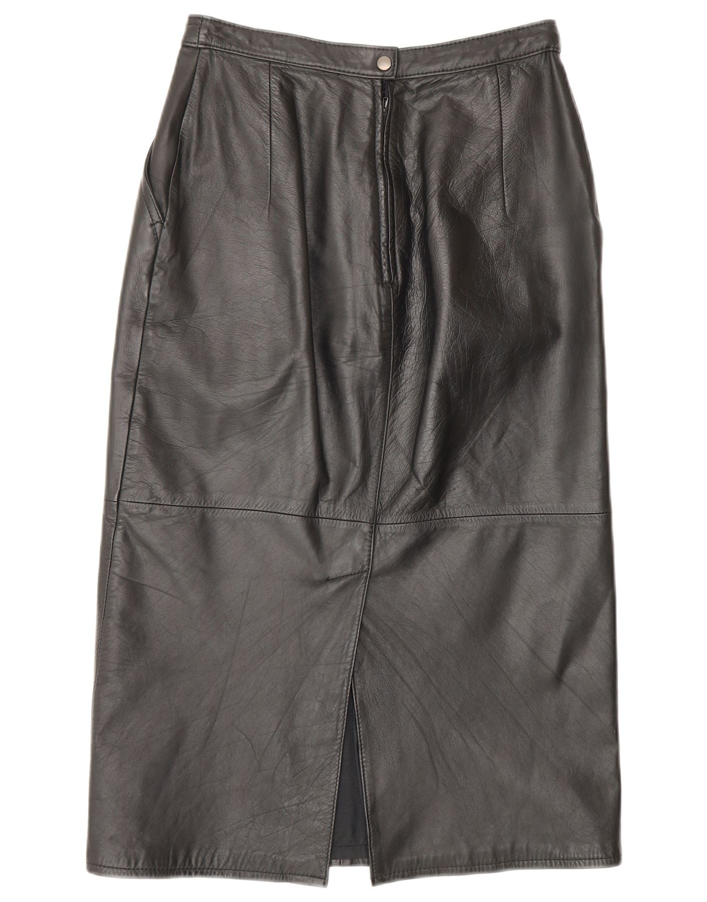 Gonna in pelle da donna VINTAGE UK 10 piccola W26 in pelle nera