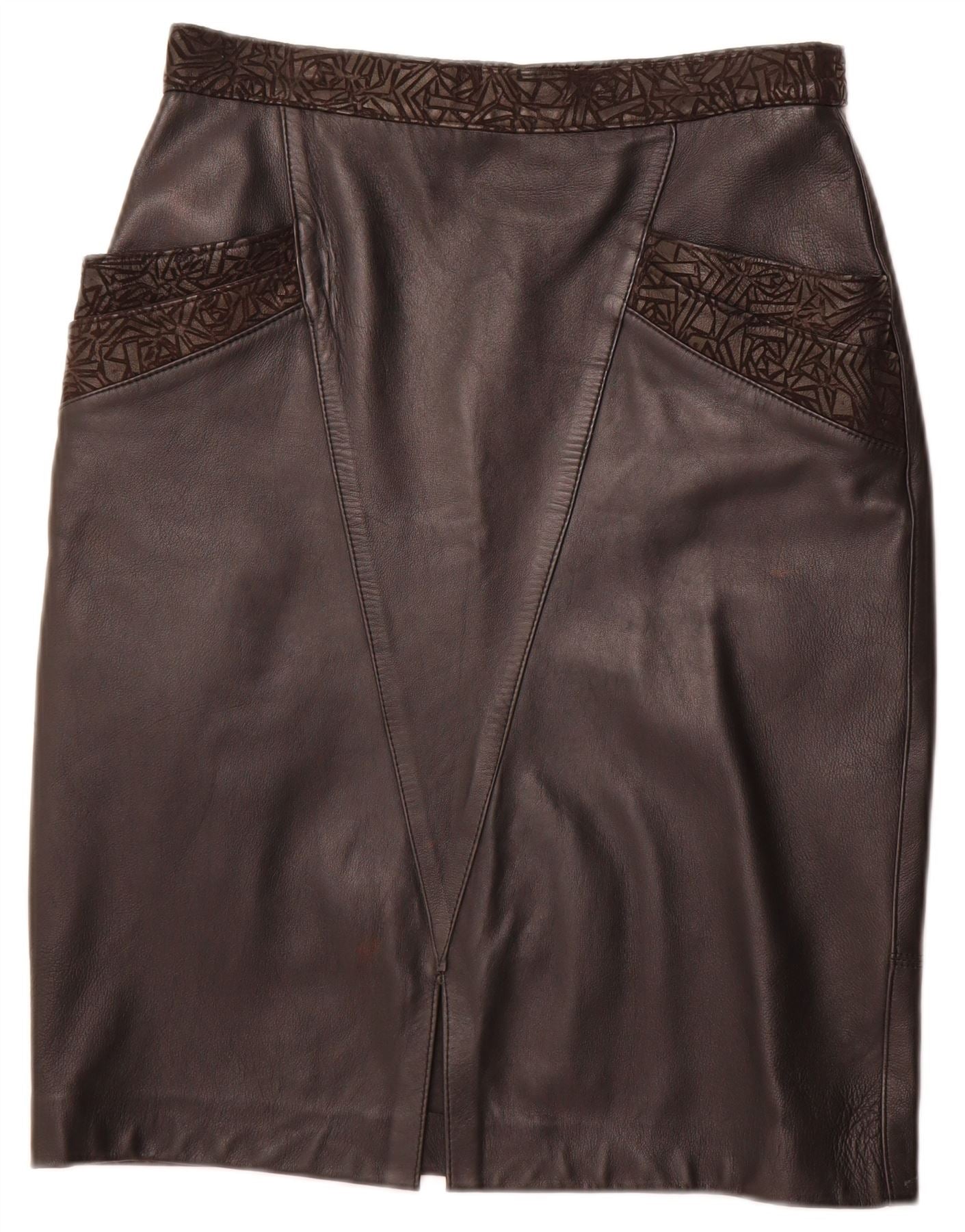 Gonna in pelle da donna VINTAGE W30 in pelle geometrica nera media