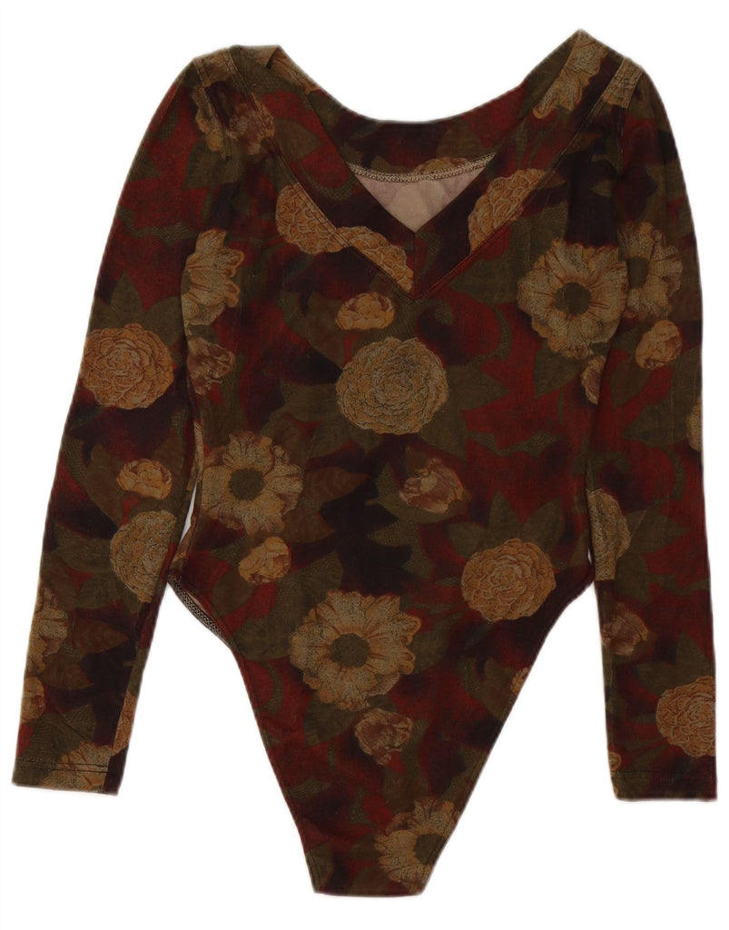 VINTAGE Womens Long Sleeve Bodysuit UK 10 Small Multicoloured Floral