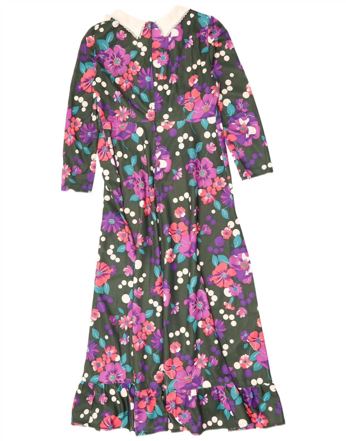 Abito maxi a maniche lunghe da donna VINTAGE UK 14 Grande floreale multicolore