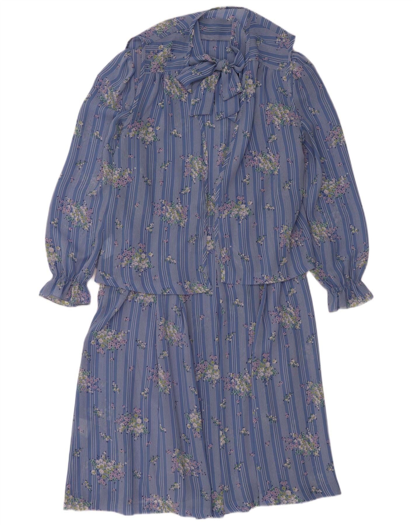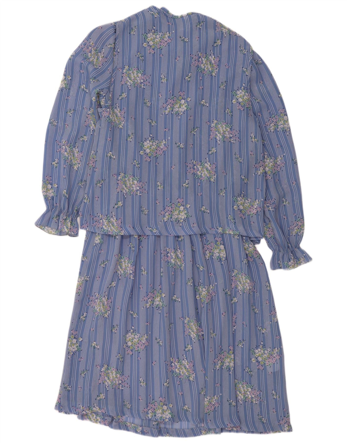 VINTAGE Womens Long Sleeve Maxi Dress UK 14 Medium Blue Floral