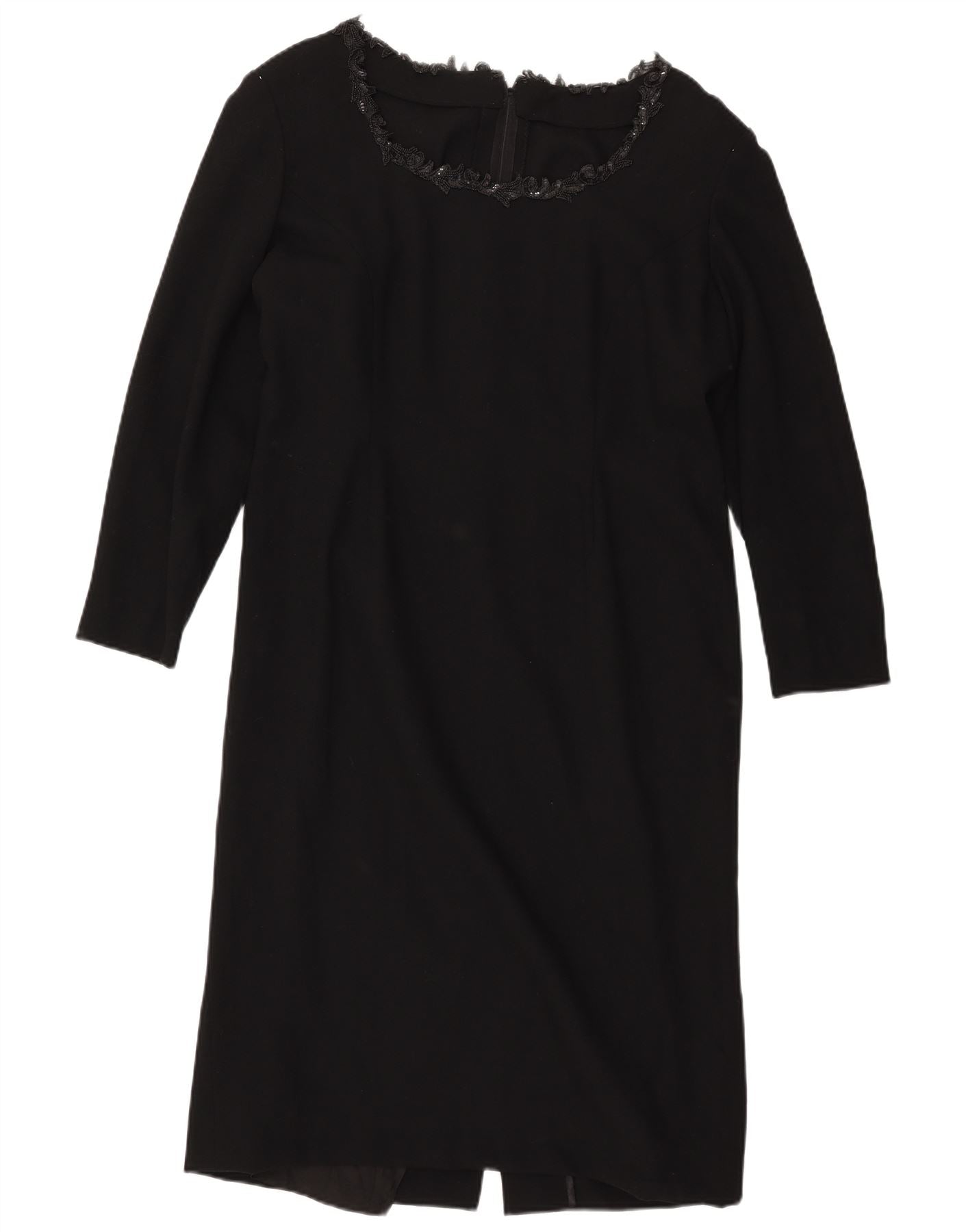 Abito tubino a maniche lunghe da donna VINTAGE UK 14 grande nero