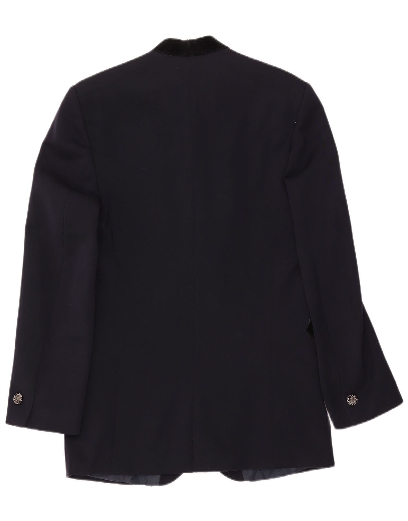 Giacca blazer lunga da donna vintage UK 14 blocco colore blu navy medio
