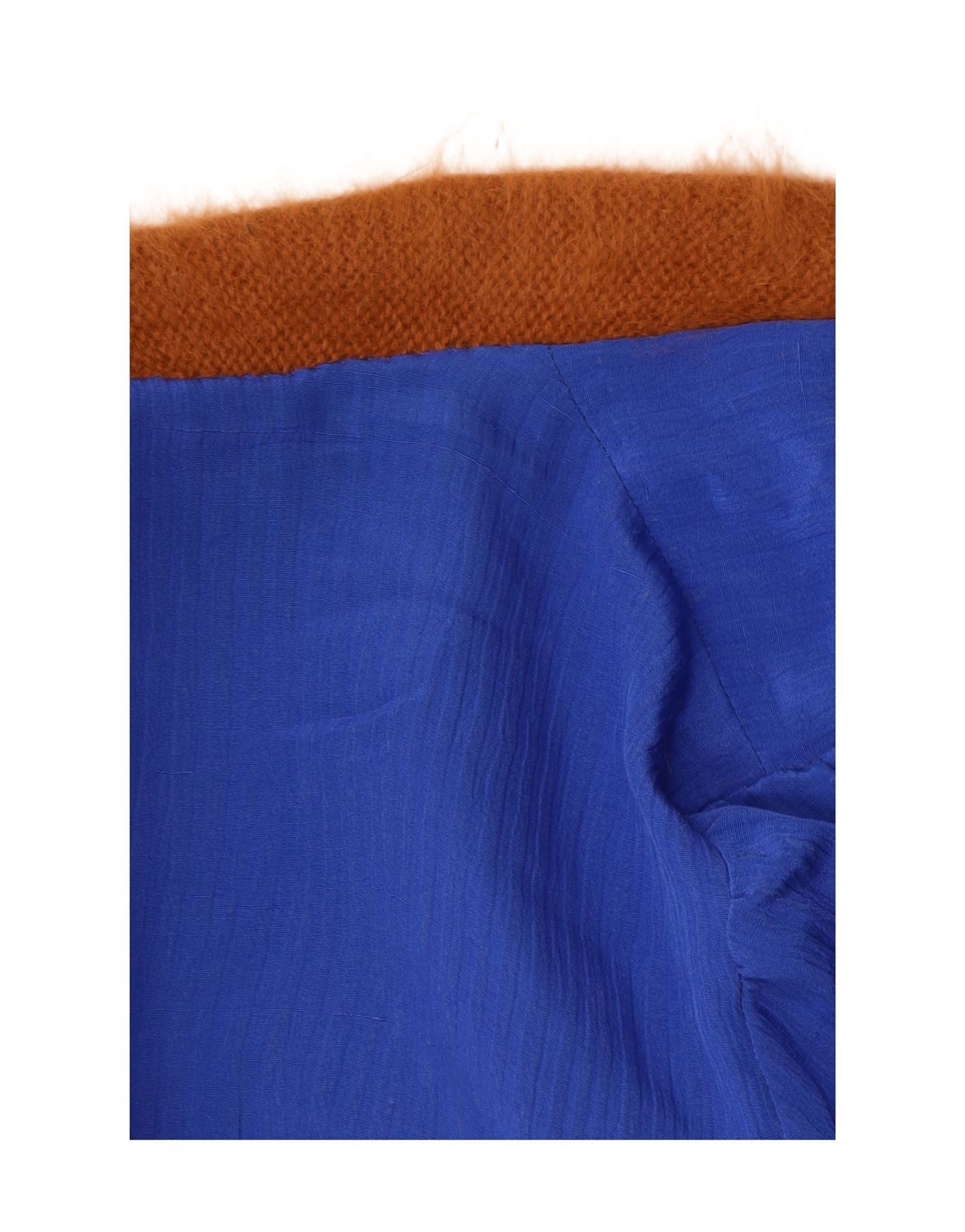 Maglione cardigan aperto lungo da donna vintage UK 14 Paisley marrone medio