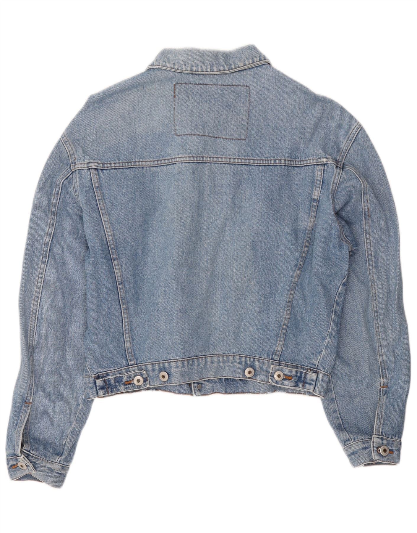 Giacca di jeans corta da donna vintage vestibilità ampia UK 16 grande blu