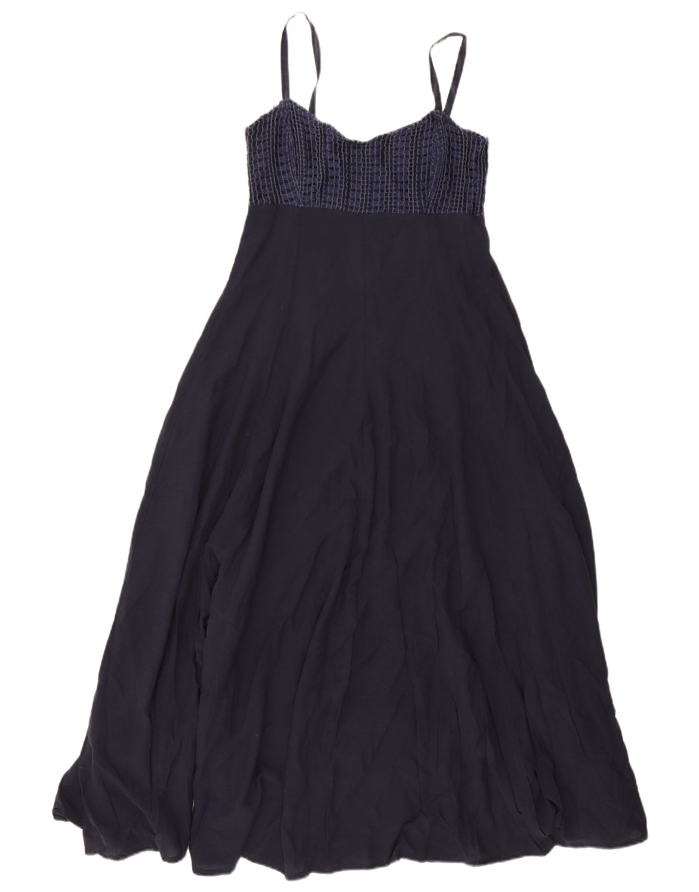 Maxi prendisole vintage da donna UK 12 medio in viscosa blu navy