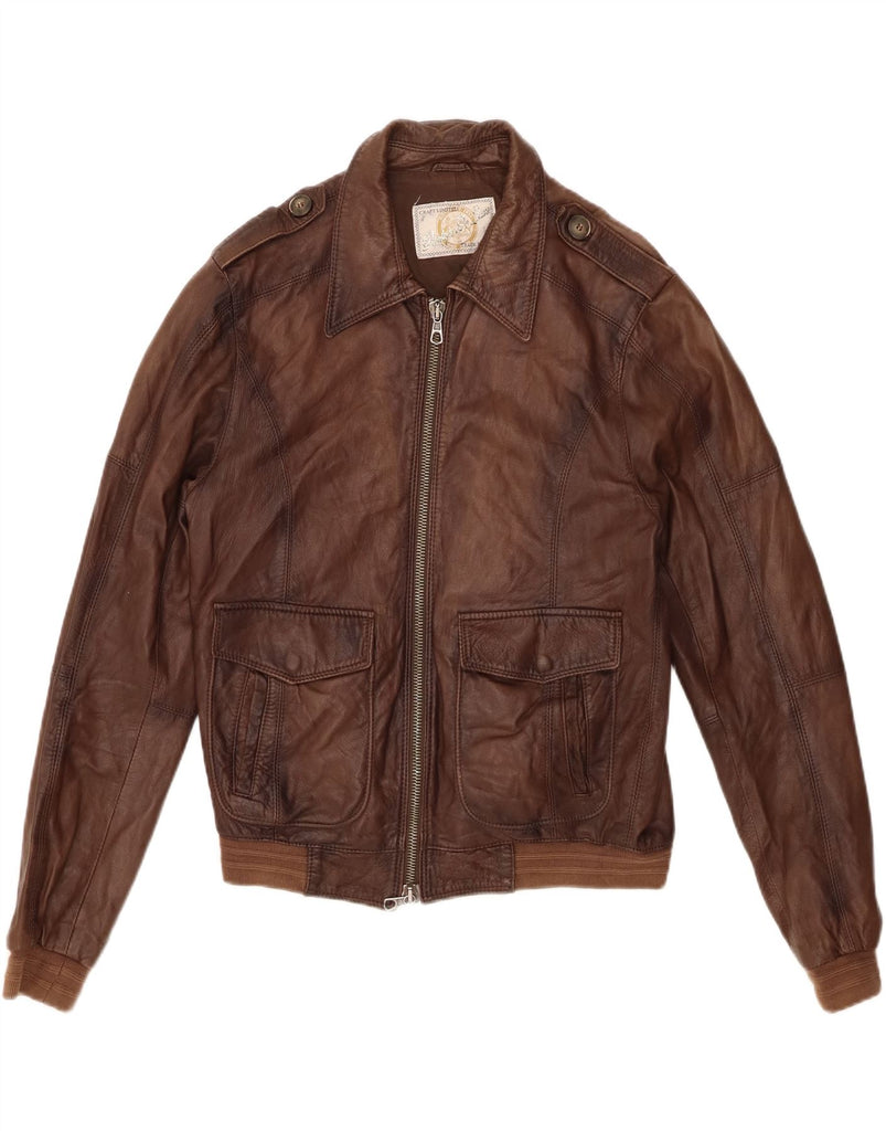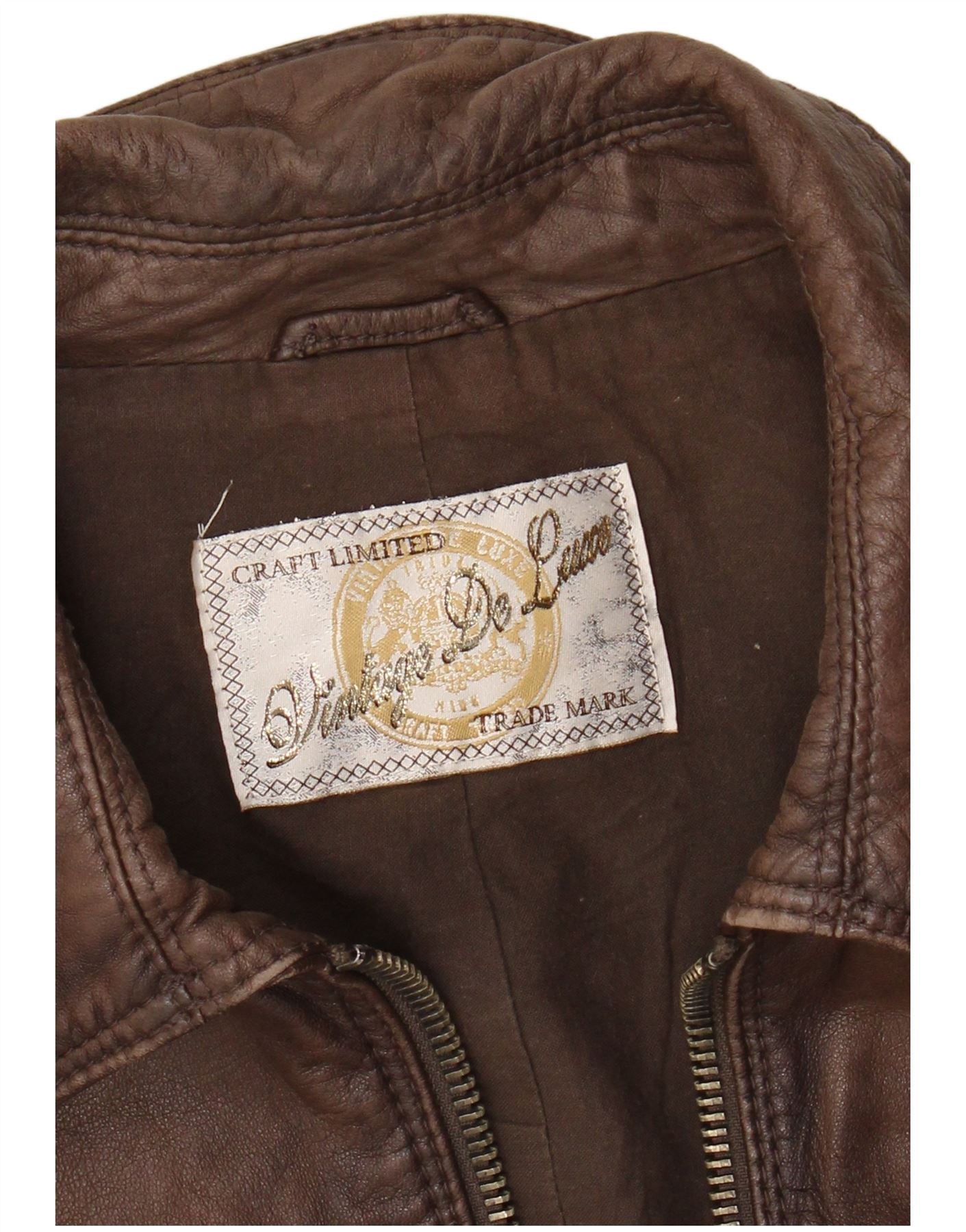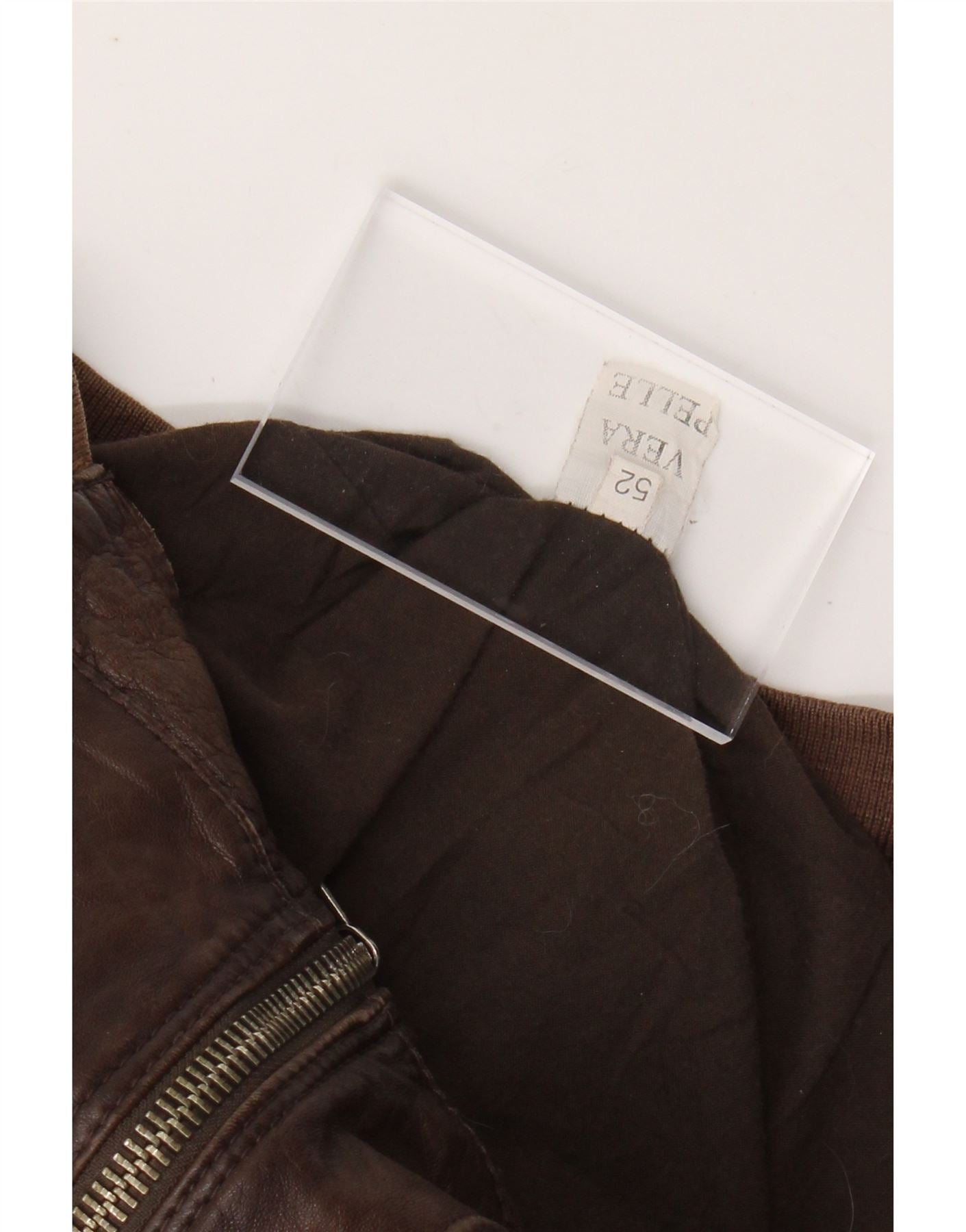 Giubbotto bomber militare da donna VINTAGE in pelle IT 52 2XL in pelle marrone