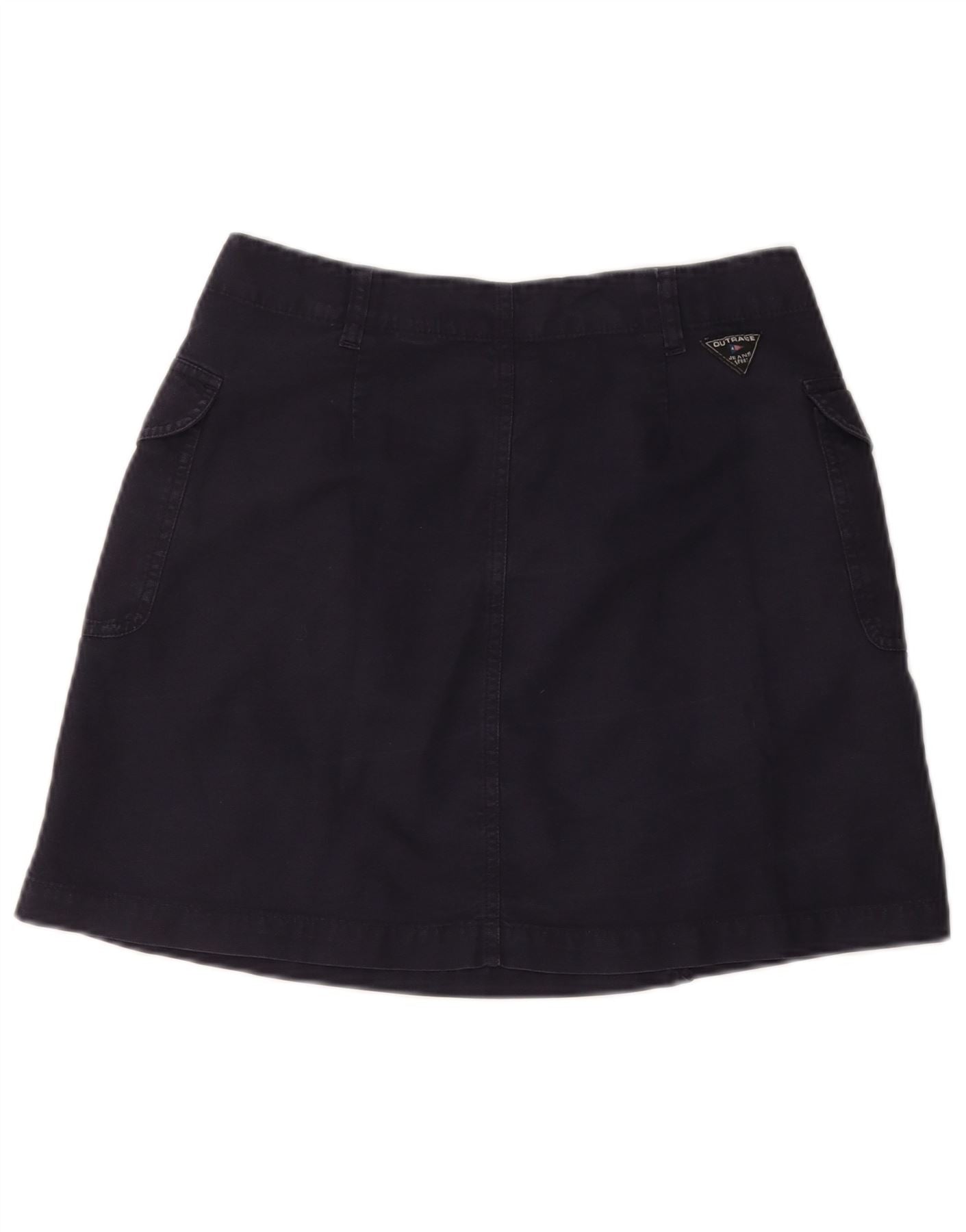 Gonna mini avvolgente da donna VINTAGE IT 44 media W28 cotone blu navy