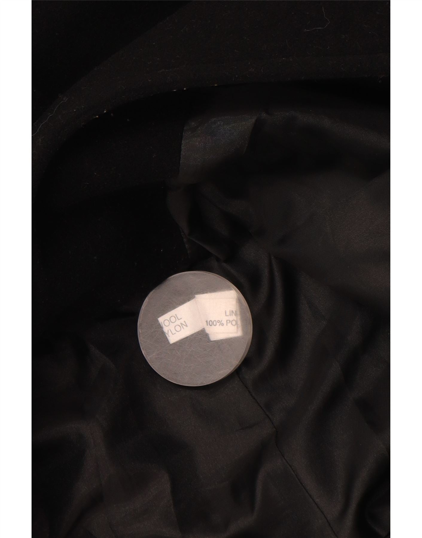 - Descrizione dell'IA: Questo soprabito da donna vintage è realizzato in un lussuoso misto lana-nylon, che offre una trama liscia e raffinata in una classica tonalità nera. Presenta uno scollo con colletto e maniche lunghe. La vestibilità regolare offre una silhouette comoda. Una chiusura frontale a tre bottoni aggiunge un tocco tradizionale. Questo cappotto foderato include pratiche tasche, unendo lo stile classico alla funzionalità.