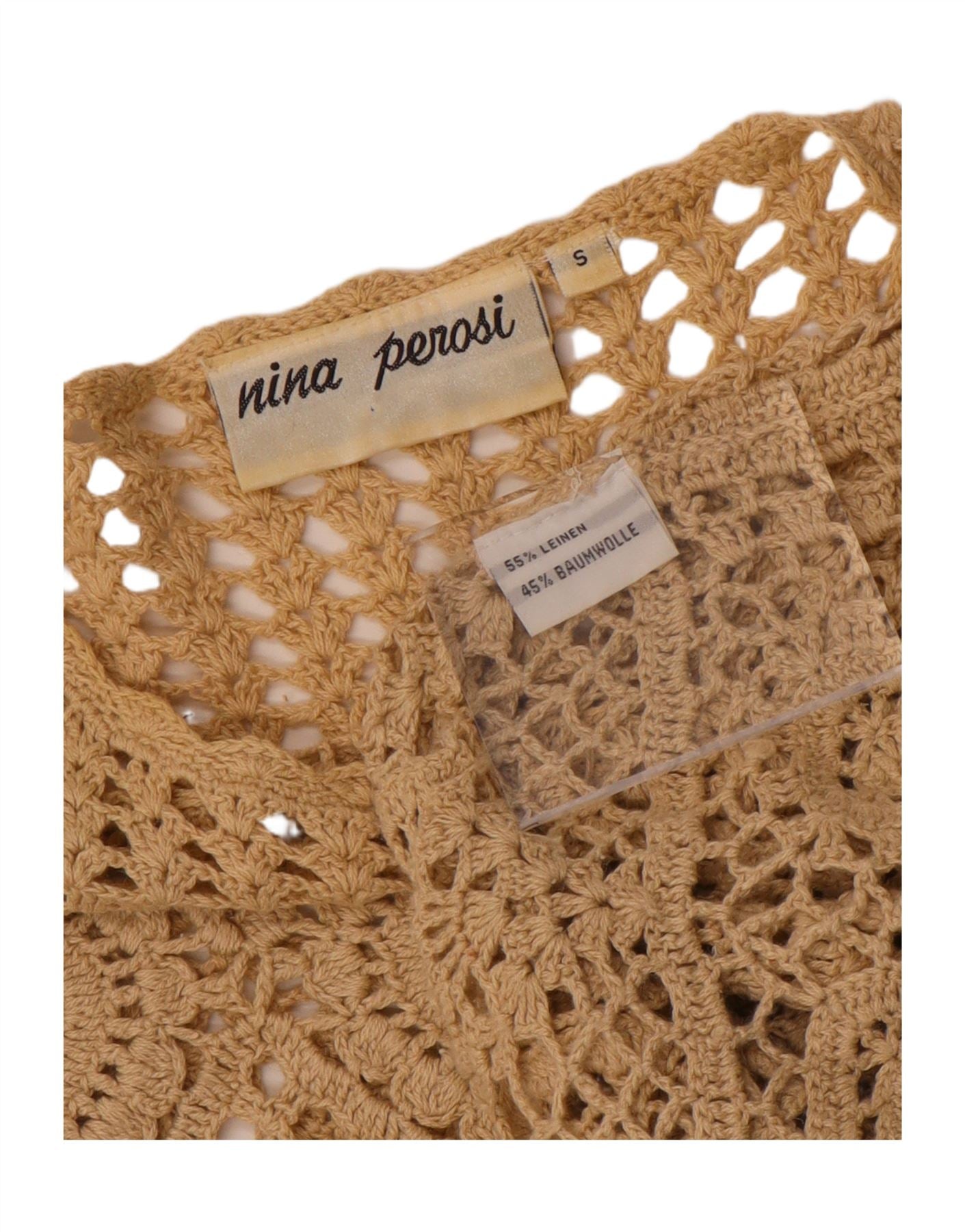 Maglione maglione oversize con scollo a barca da donna VINTAGE UK 10 piccolo beige