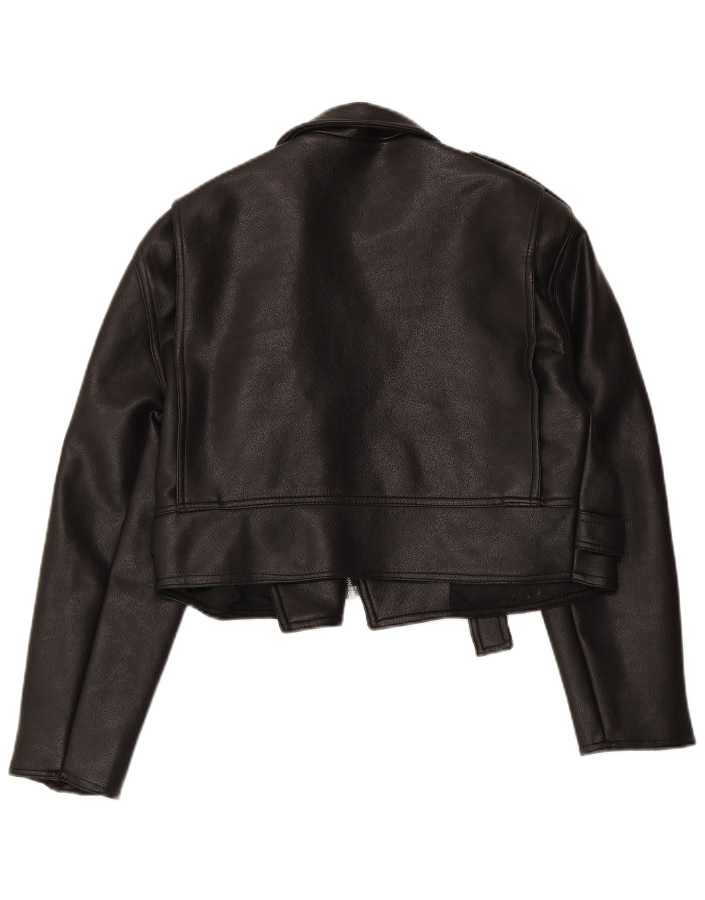 Giacca da motociclista in pelle corta oversize da donna VINTAGE UK 10 piccola nera