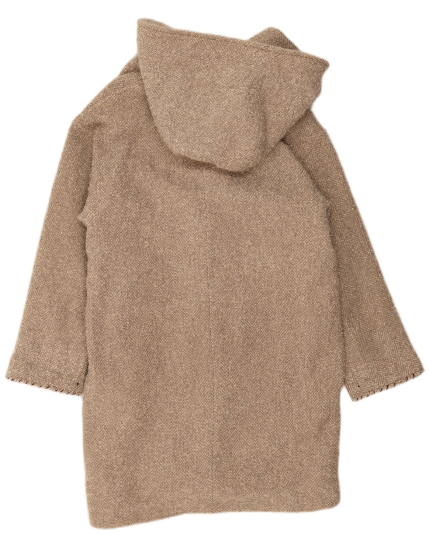 Cappotto oversize con cappuccio da donna VINTAGE UK 10 piccolo a spina di pesce beige