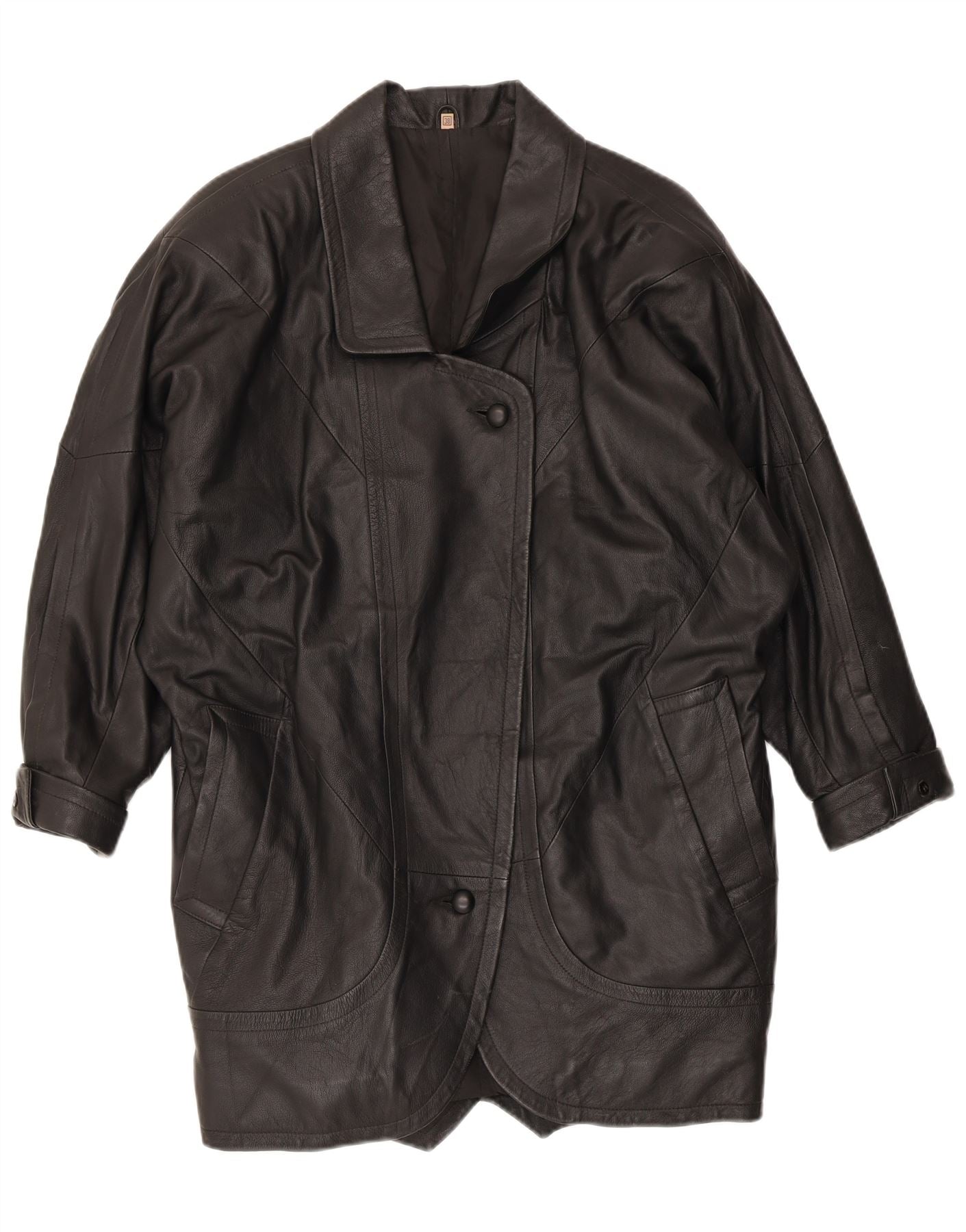 Cappotto in pelle oversize da donna VINTAGE EU 38 pelle nera media