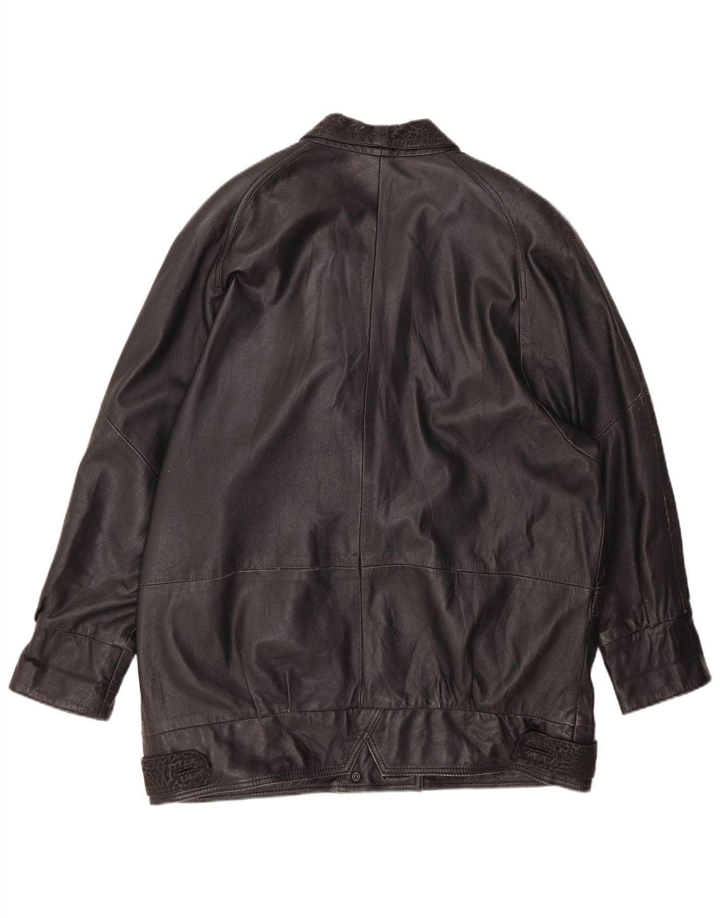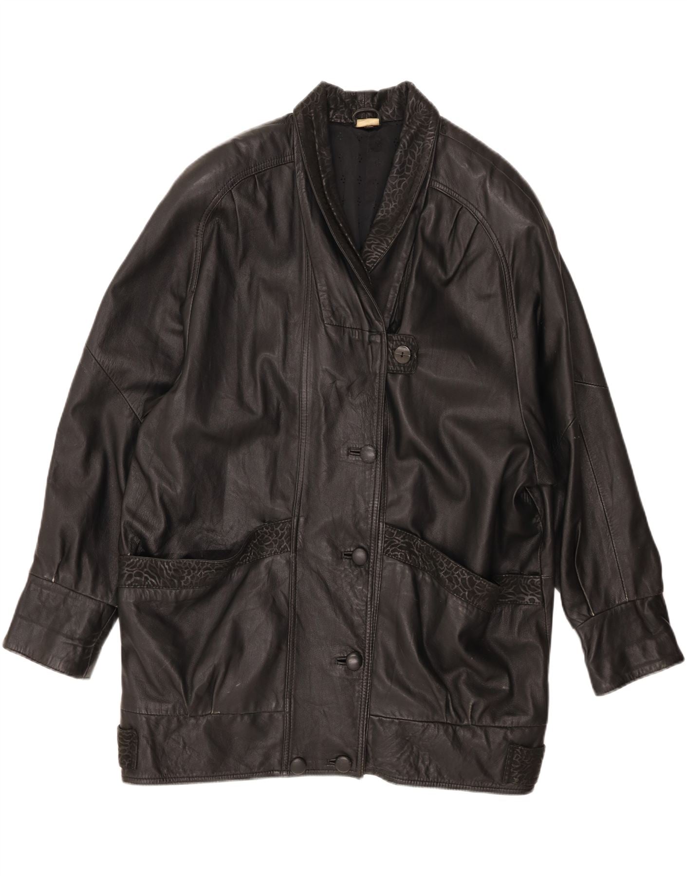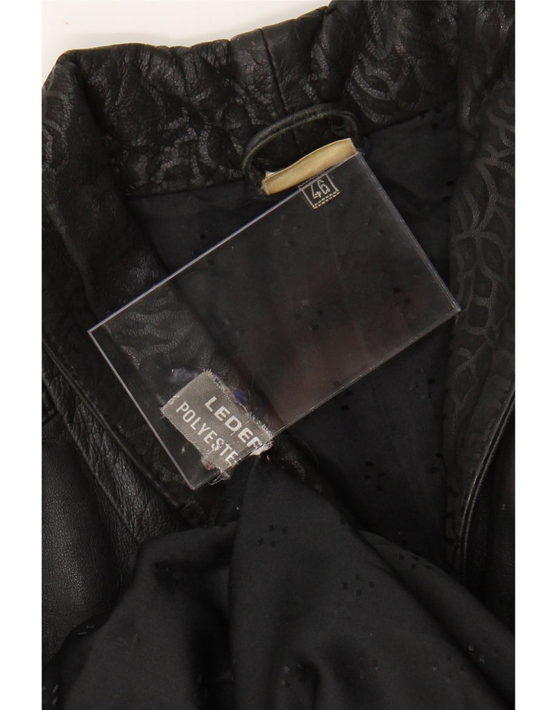 VINTAGE Womens Oversized Leather Coat EU 46 XL Black Animal Print Leather