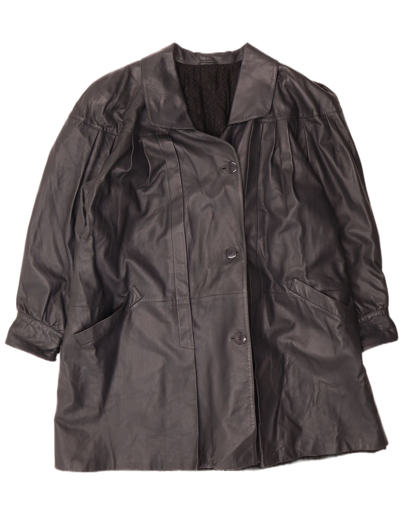 Cappotto oversize in pelle vintage da donna IT 44 classico in pelle nera media