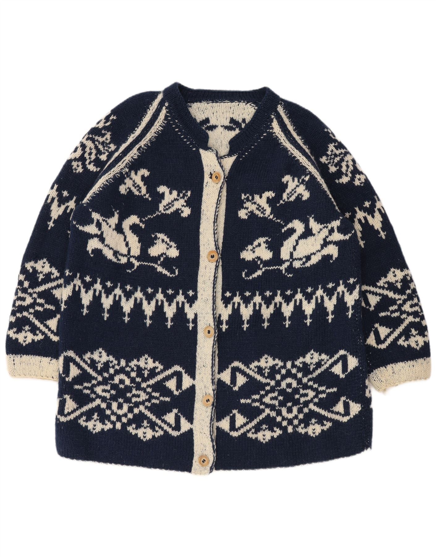 Maglione cardigan lungo oversize da donna vintage UK 18 XL Blu navy