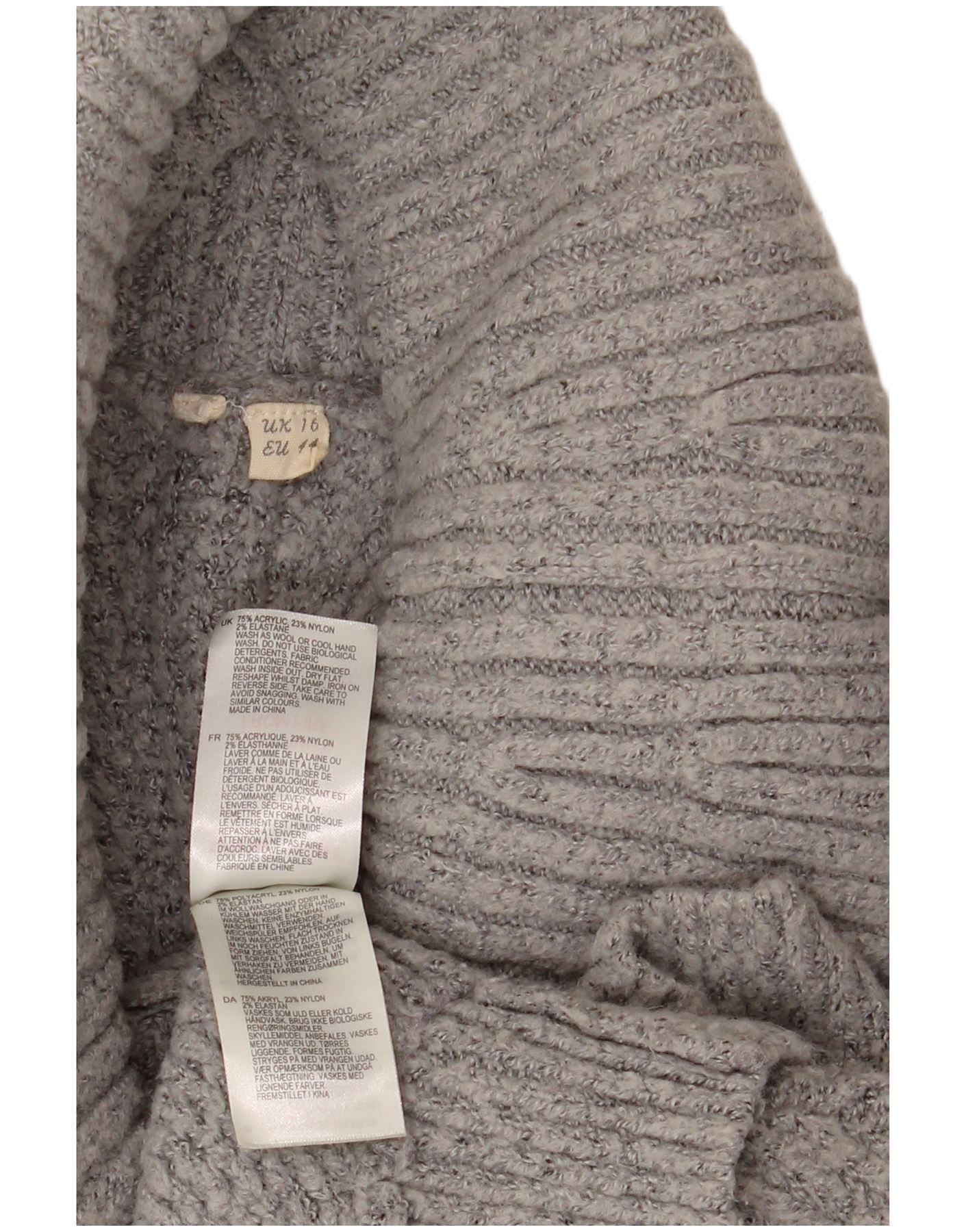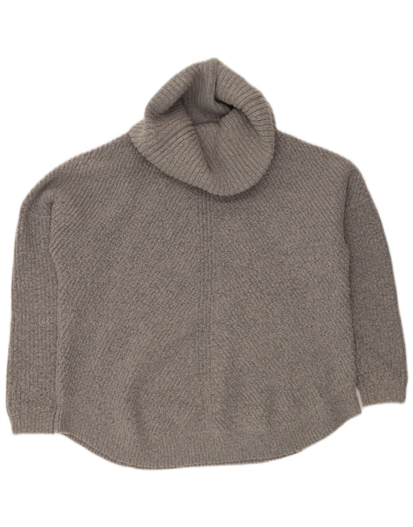 Maglione maglione oversize da donna VINTAGE con collo alto UK 16 grande grigio