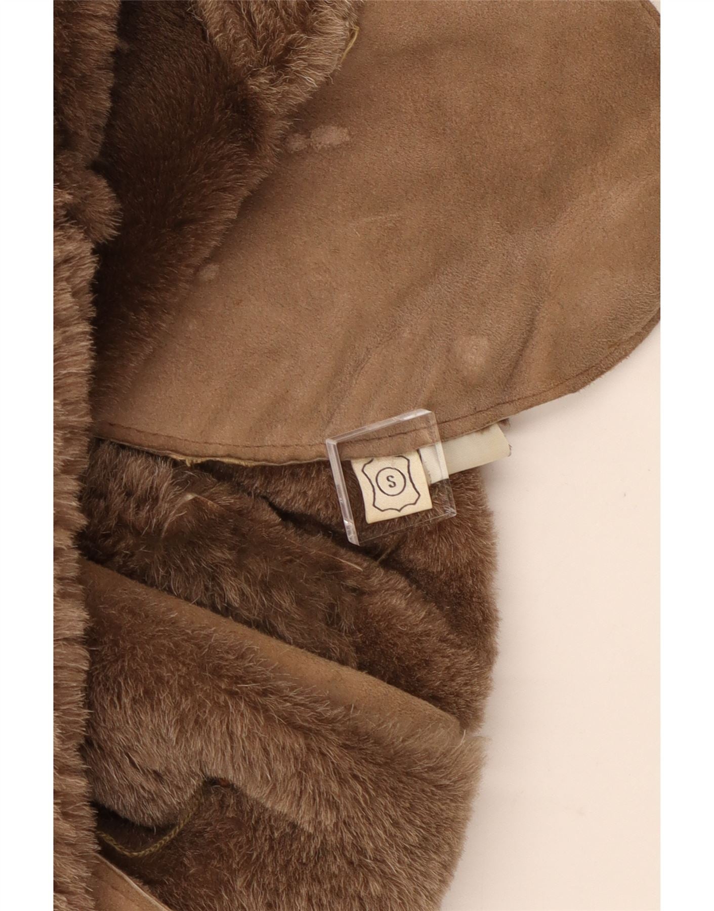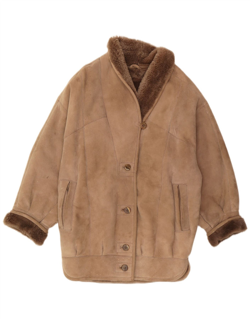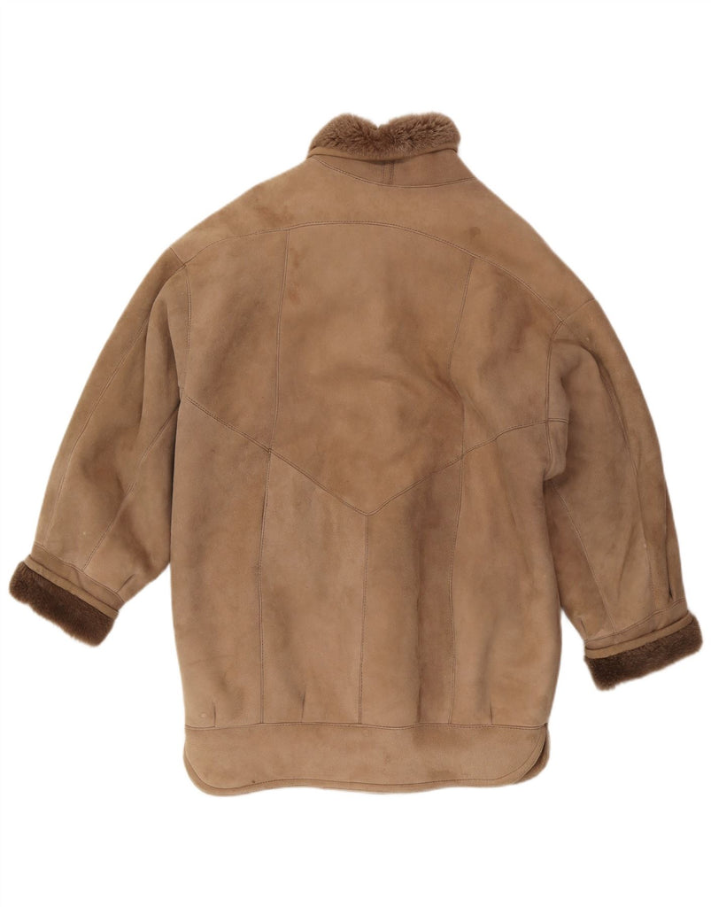 Cappotto in shearling oversize da donna VINTAGE UK 10 piccolo in pelle beige