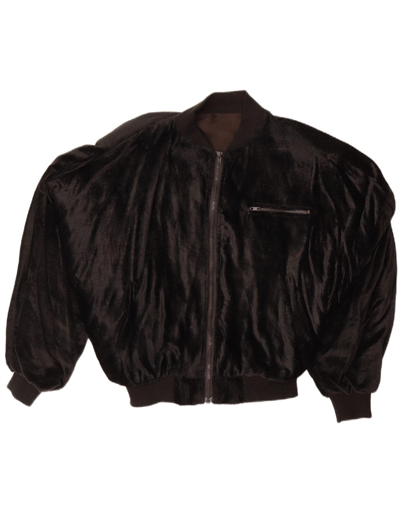 Giubbotto bomber oversize in velluto da donna VINTAGE UK 14 viscosa nera media