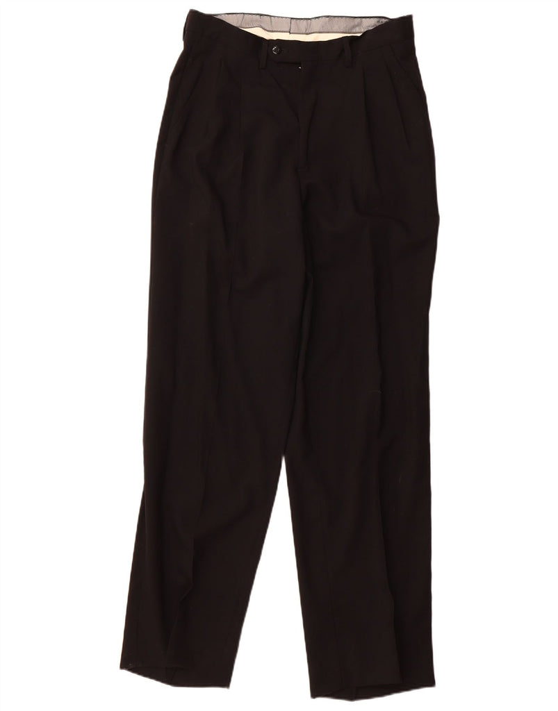 Pantaloni da abito con pedge da donna VINTAGE IT 46 Small W30 L31 Lana nera