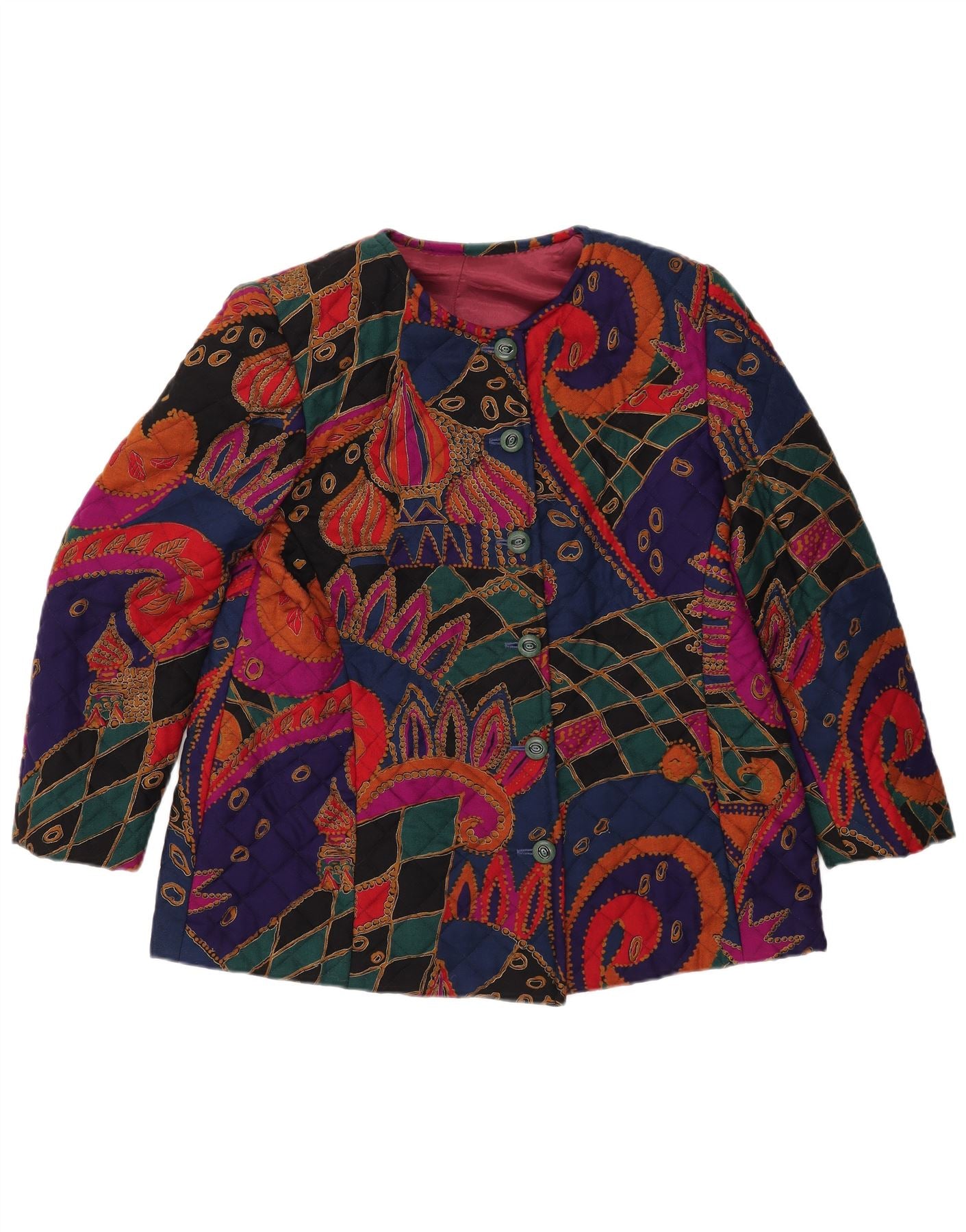Giacca trapuntata da donna VINTAGE UK 14 Grande Paisley multicolore