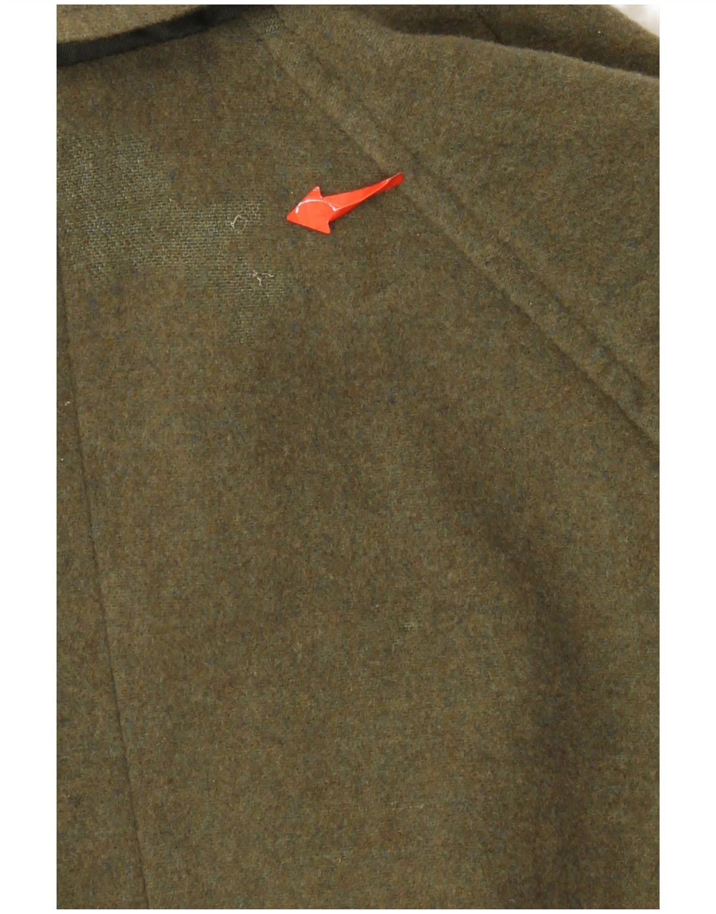 - Descrizione dell'IA: Questo soprabito da donna vintage è realizzato in tessuto misto reversibile. Un lato presenta una finitura verde liscia e intrecciata. Il retro presenta un verde strutturato, leggermente più scuro. Presenta uno scollo classico con colletto e maniche lunghe. La vestibilità regolare garantisce una vestibilità comoda. La chiusura frontale con bottoni e i discreti dettagli con bottoni sui polsini aggiungono dettagli tradizionali. Pratiche tasche sono integrate nel design. Questo cappotto versatile offre due look distinti.