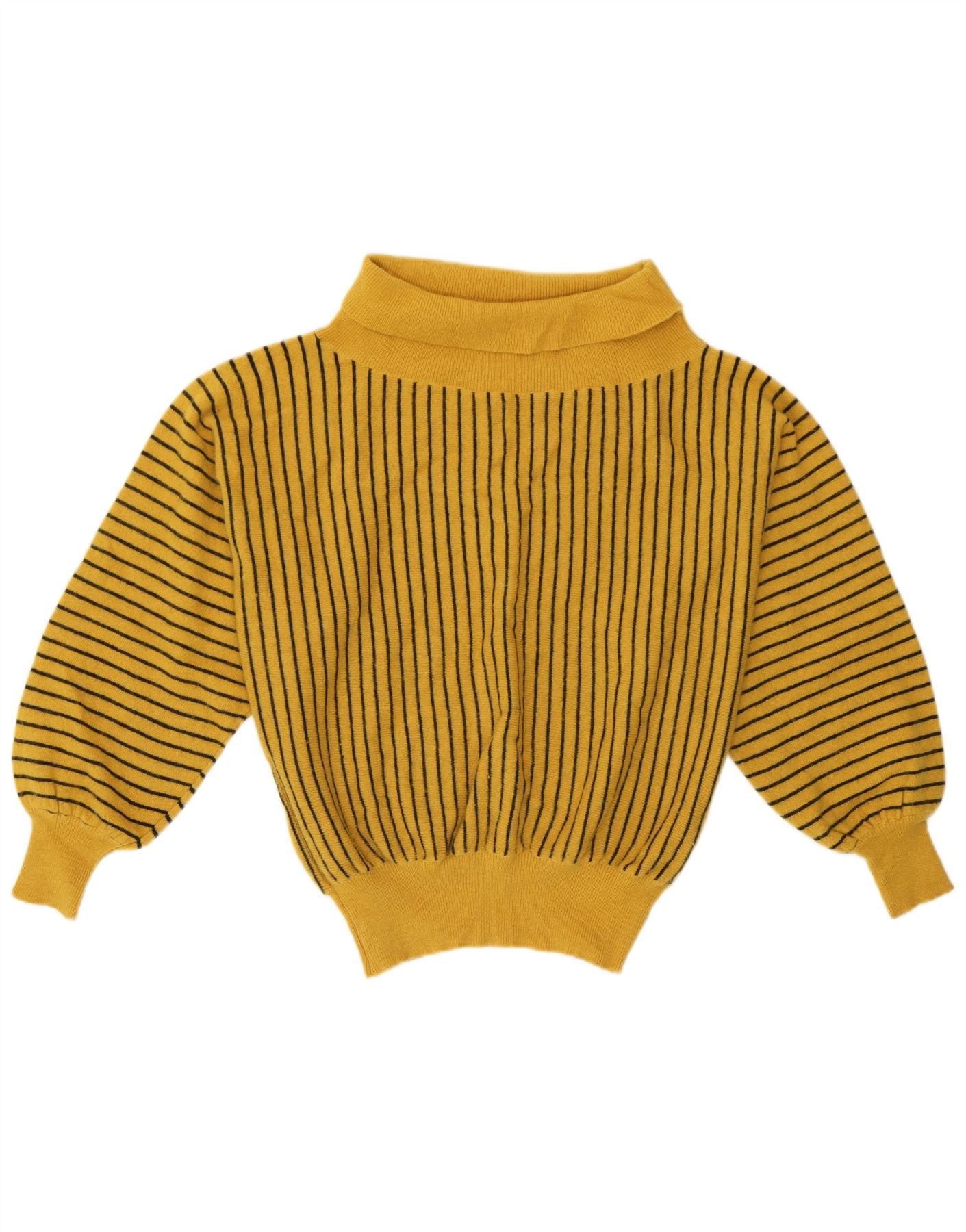Maglione maglione vintage da donna con collo alto UK 12 a righe gialle medie