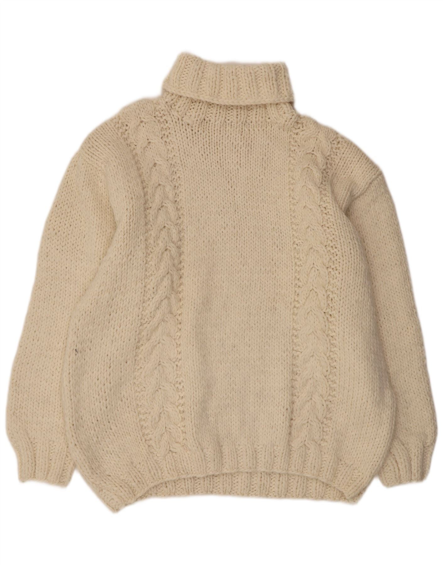 Maglione maglione collo alto da donna VINTAGE UK 22 3XL bianco sporco