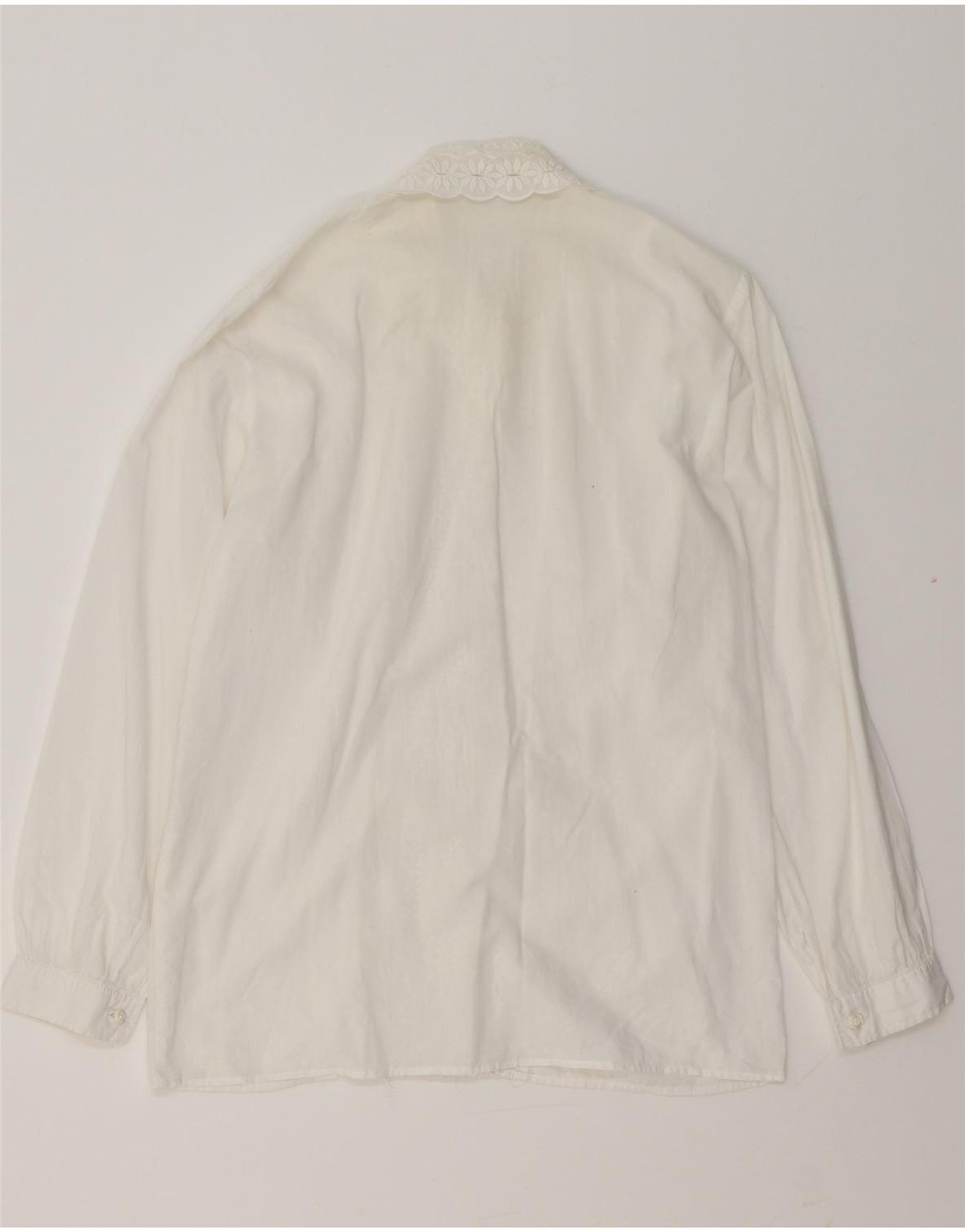 Camicetta da donna con volant sul davanti VINTAGE UK 14 floreale bianco medio