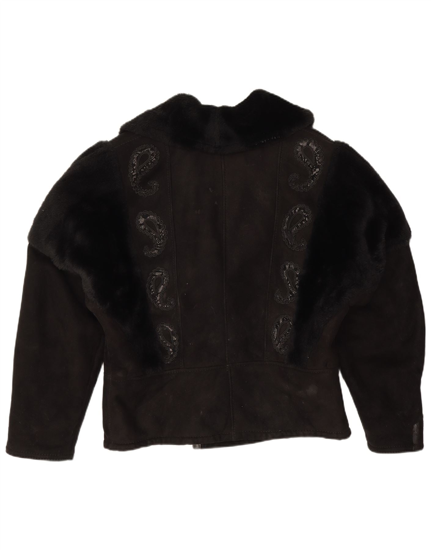 Giacca vintage in shearling da donna UK 18 XL Nero Paisley