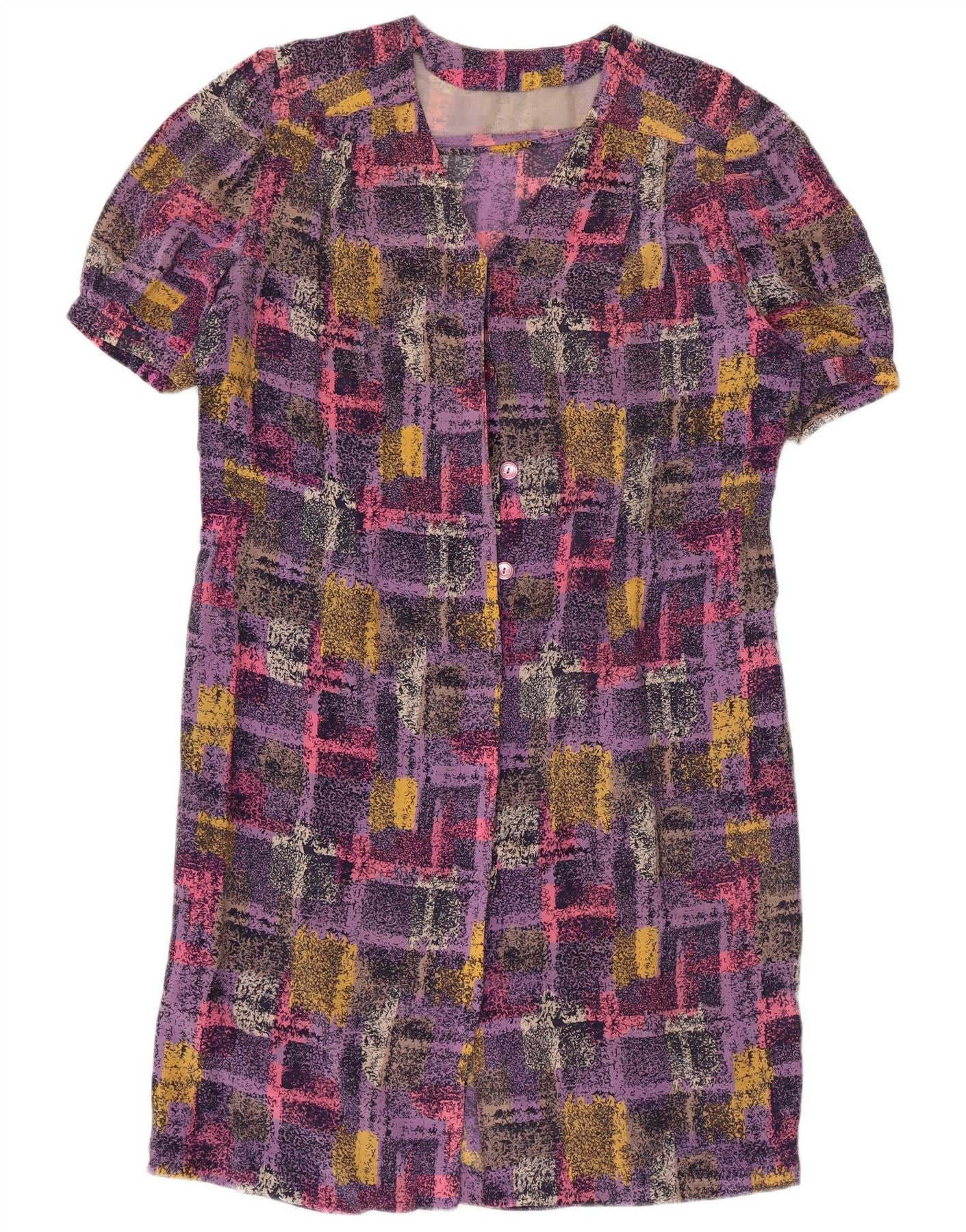 Abito a trapezio da donna VINTAGE UK 16 grande motivo a quadri multicolore