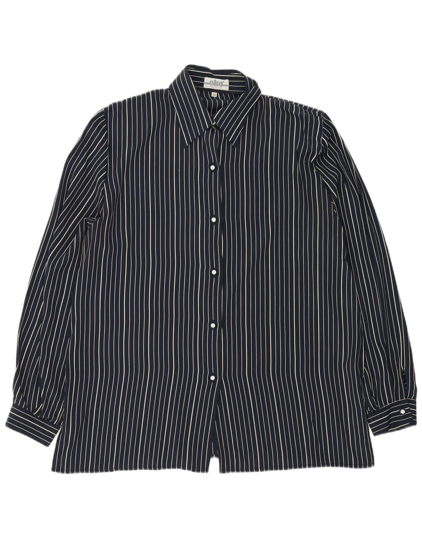 Camicetta Camicia Donna VINTAGE IT 50 XL Seta Gessata Blu Navy