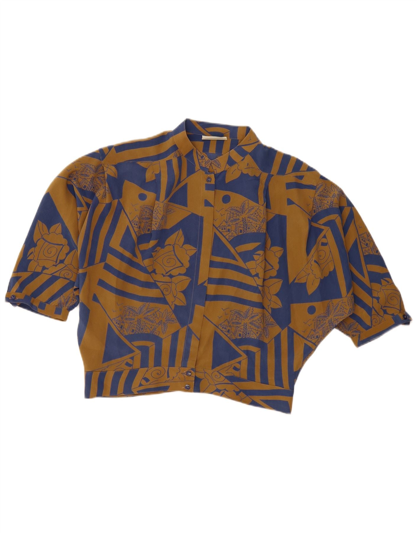 Camicetta camicia a maniche corte da donna VINTAGE IT 46 grande seta floreale marrone