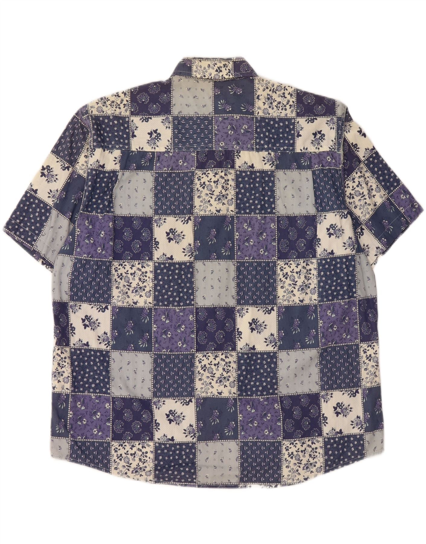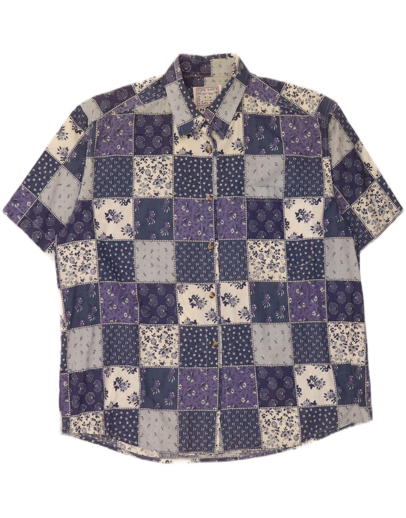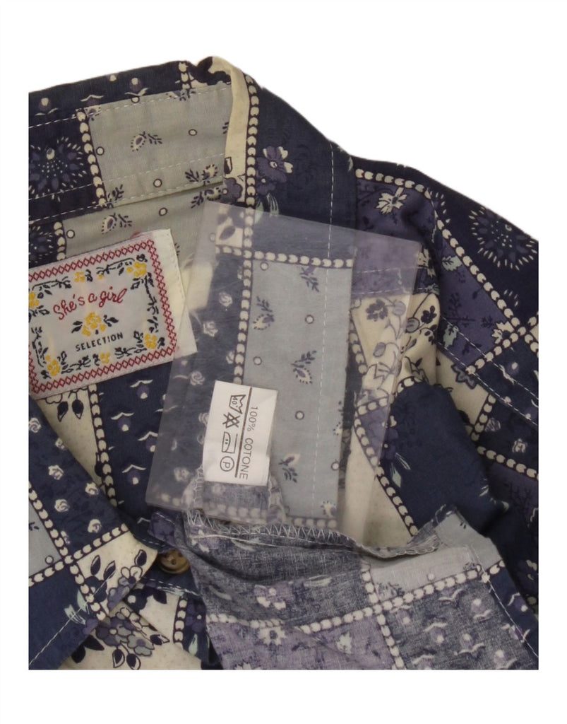 Camicia a maniche corte da donna VINTAGE UK 20 2XL Cotone patchwork blu