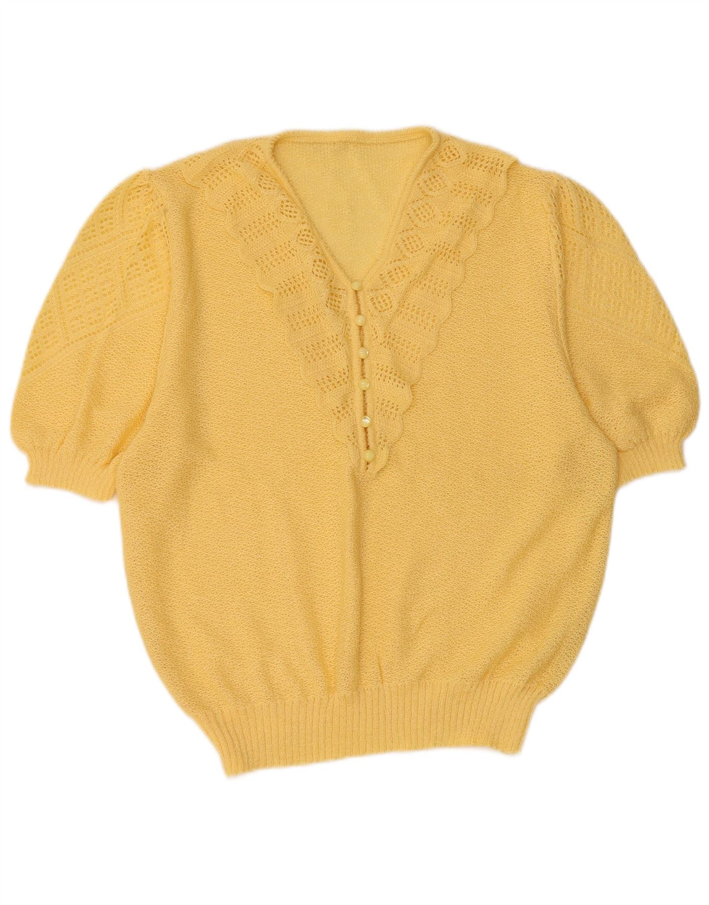 Maglione da donna VINTAGE a maniche corte con scollo a V UK 16 grande giallo