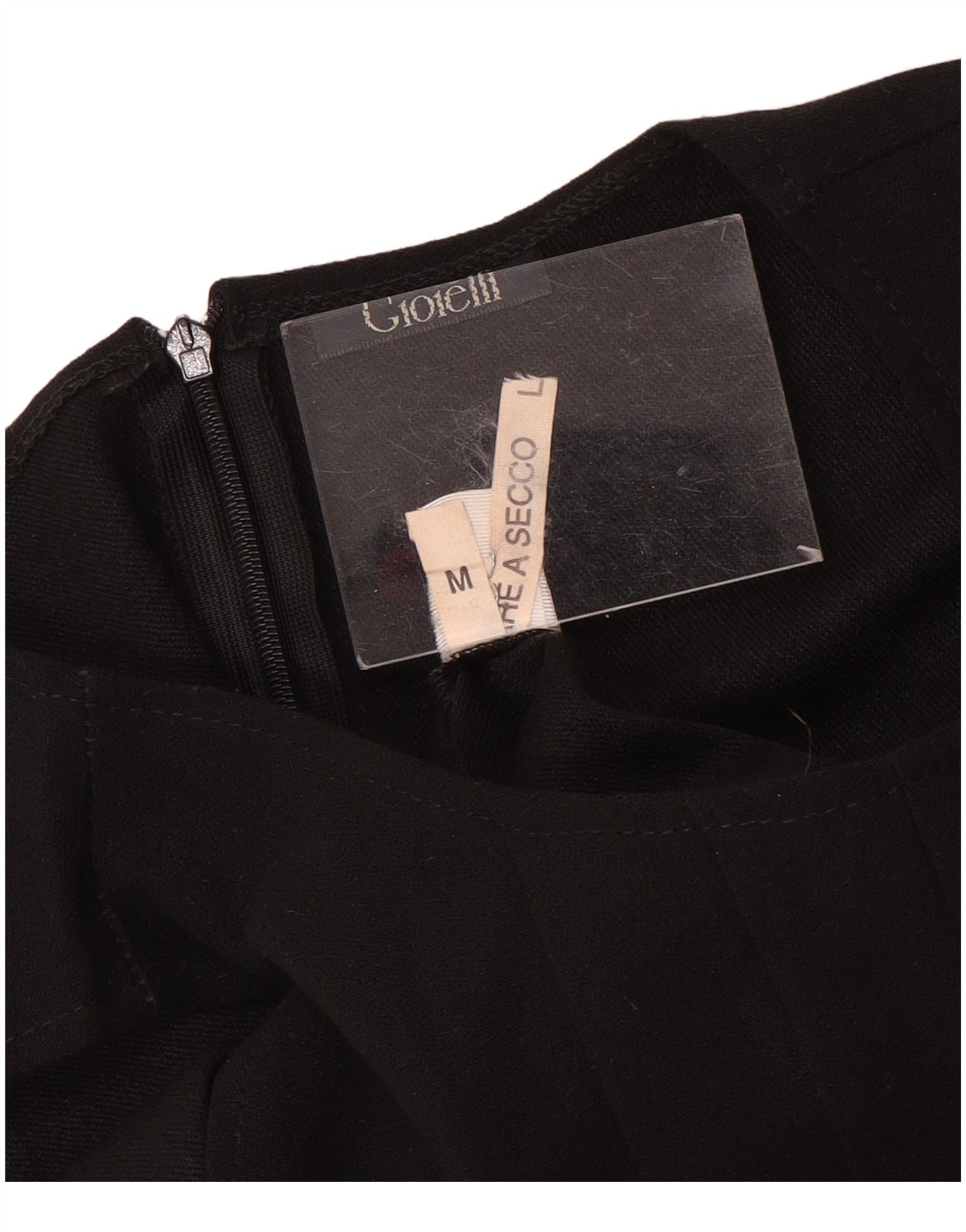 Abito a trapezio senza maniche vintage da donna UK 12 lana nera media