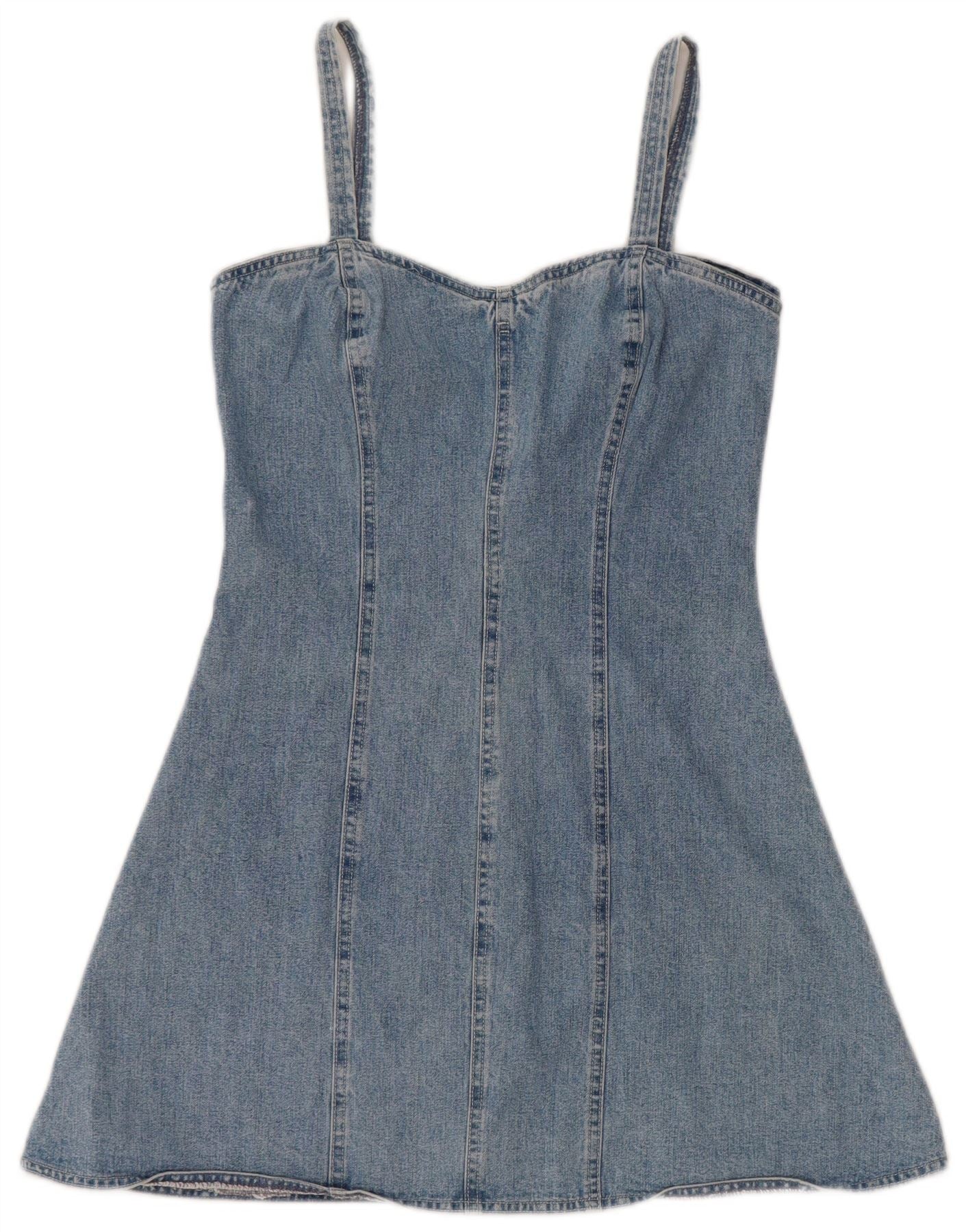 Mini abito in denim vintage da donna senza maniche UK 12 Cotone blu medio