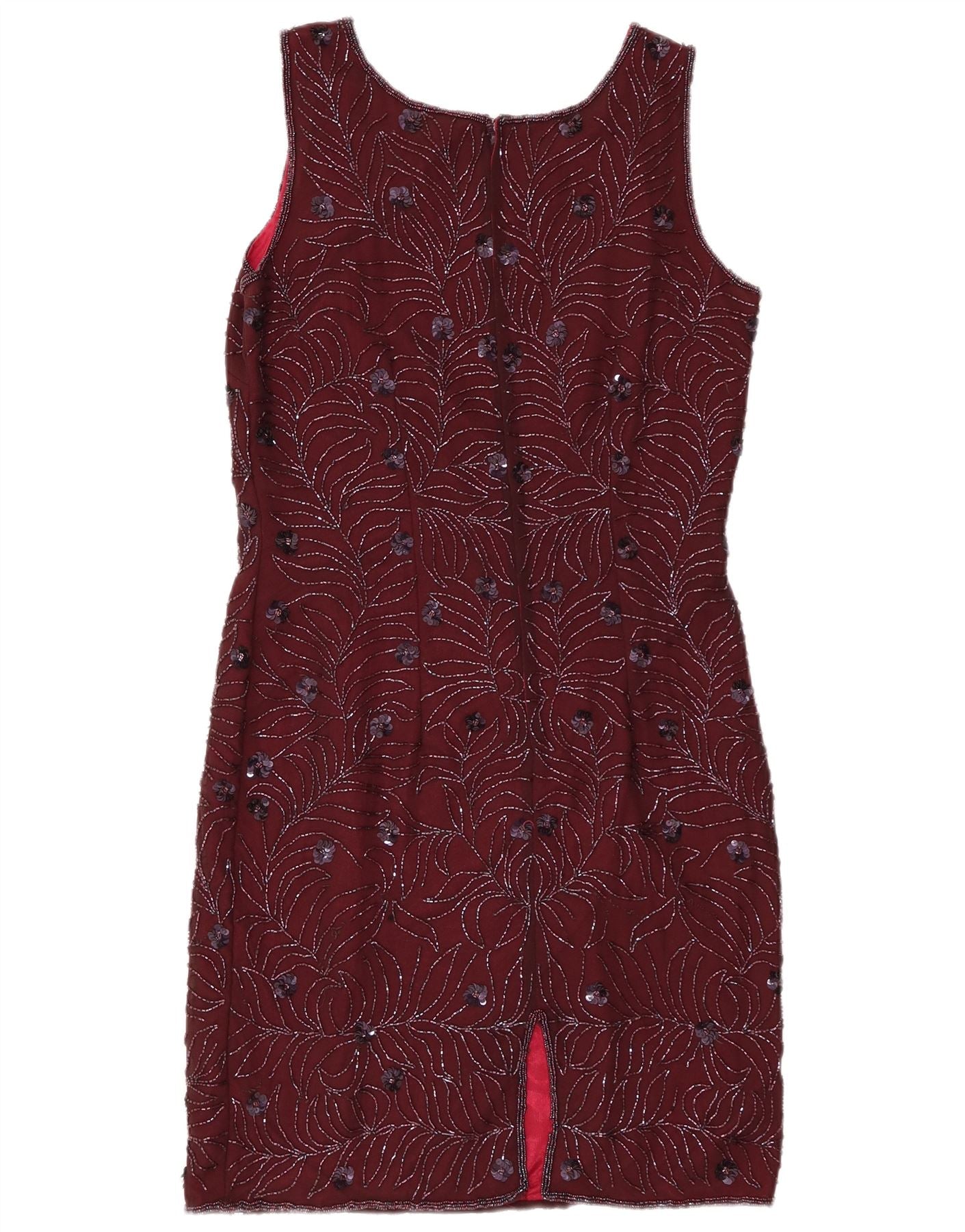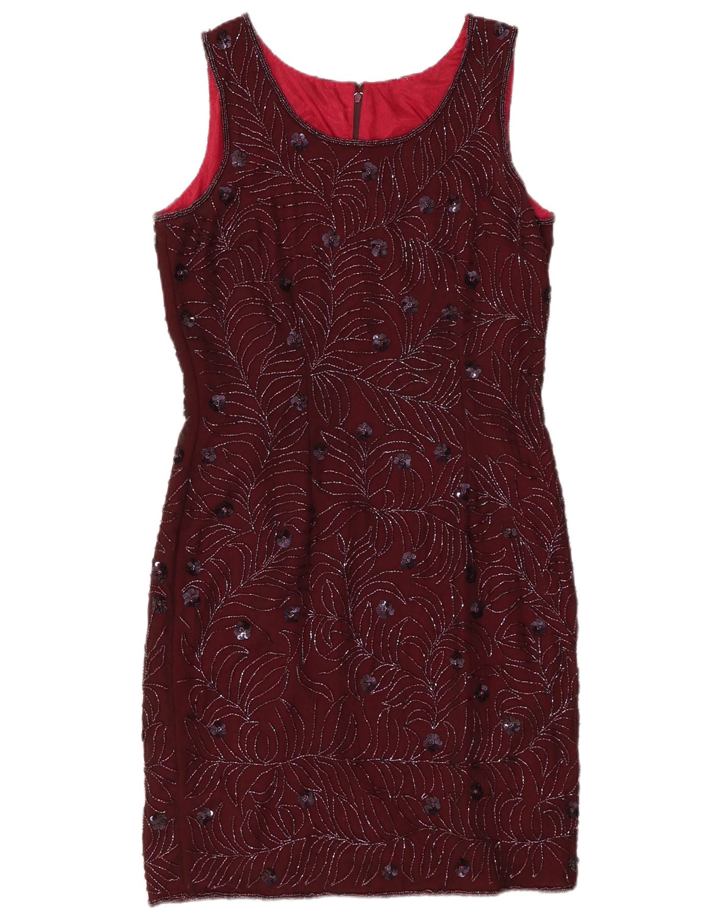 Abito tubino senza maniche da donna VINTAGE UK 12 Borgogna medio floreale