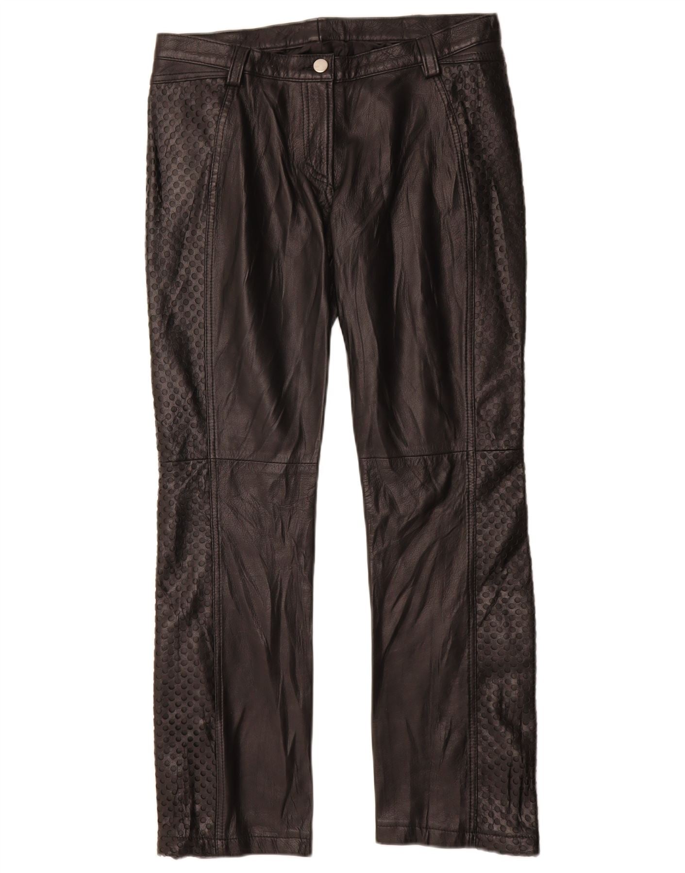 Pantaloni dritti in pelle vintage da donna IT 42 medi W28 L29 Pelle nera