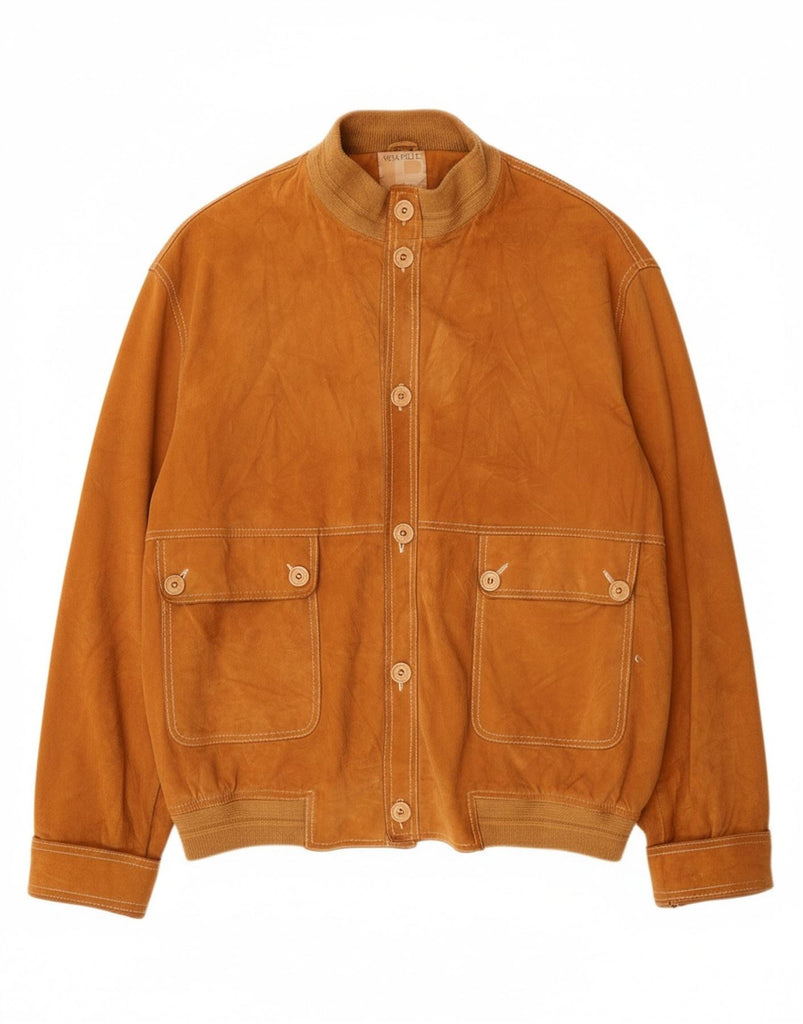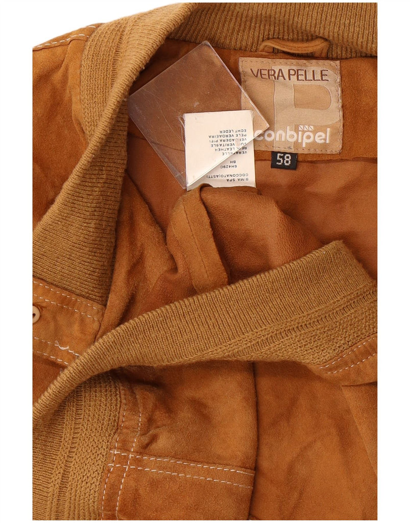 VINTAGE Womens Suede Bomber Jacket IT 58 5XL Brown Leather