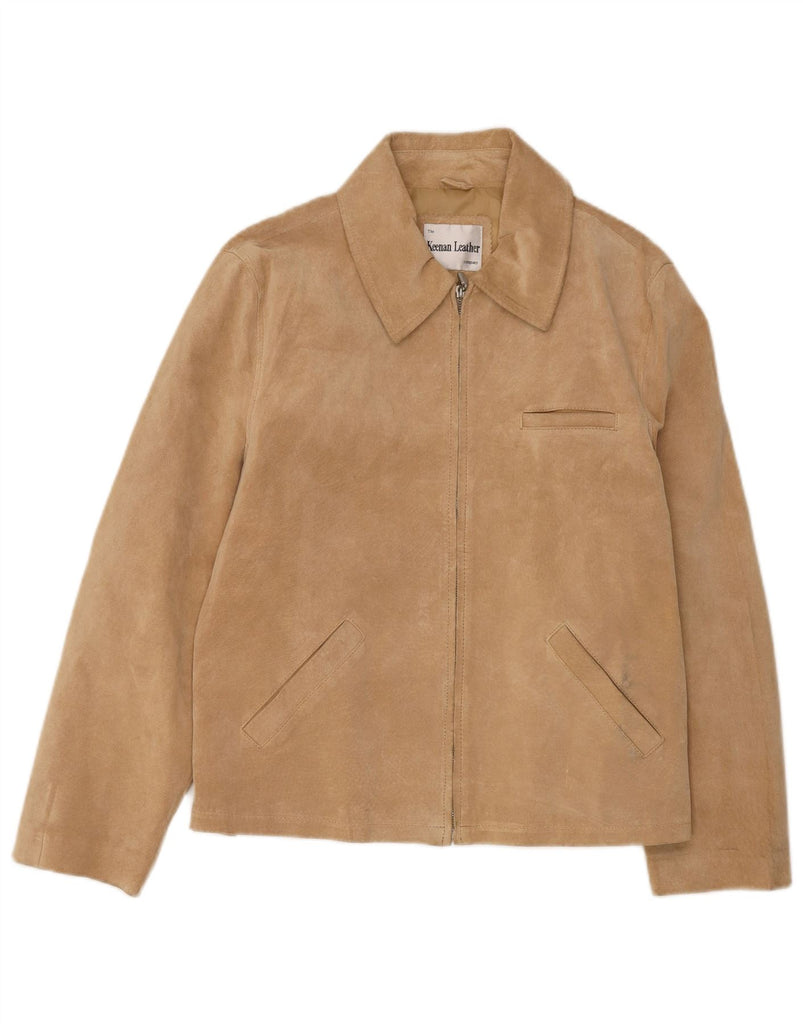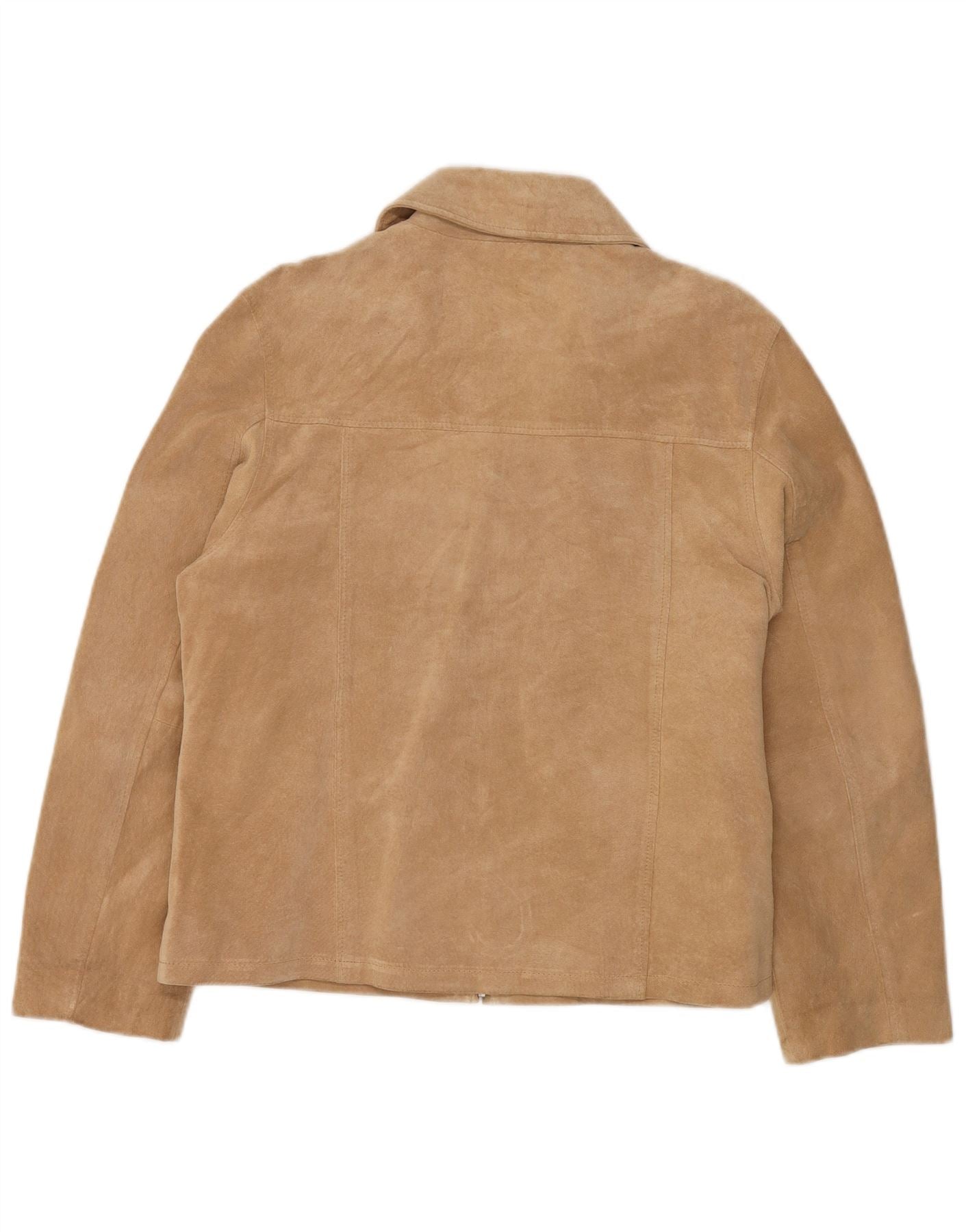 Giacca in pelle scamosciata da donna VINTAGE UK 14 grande pelle beige