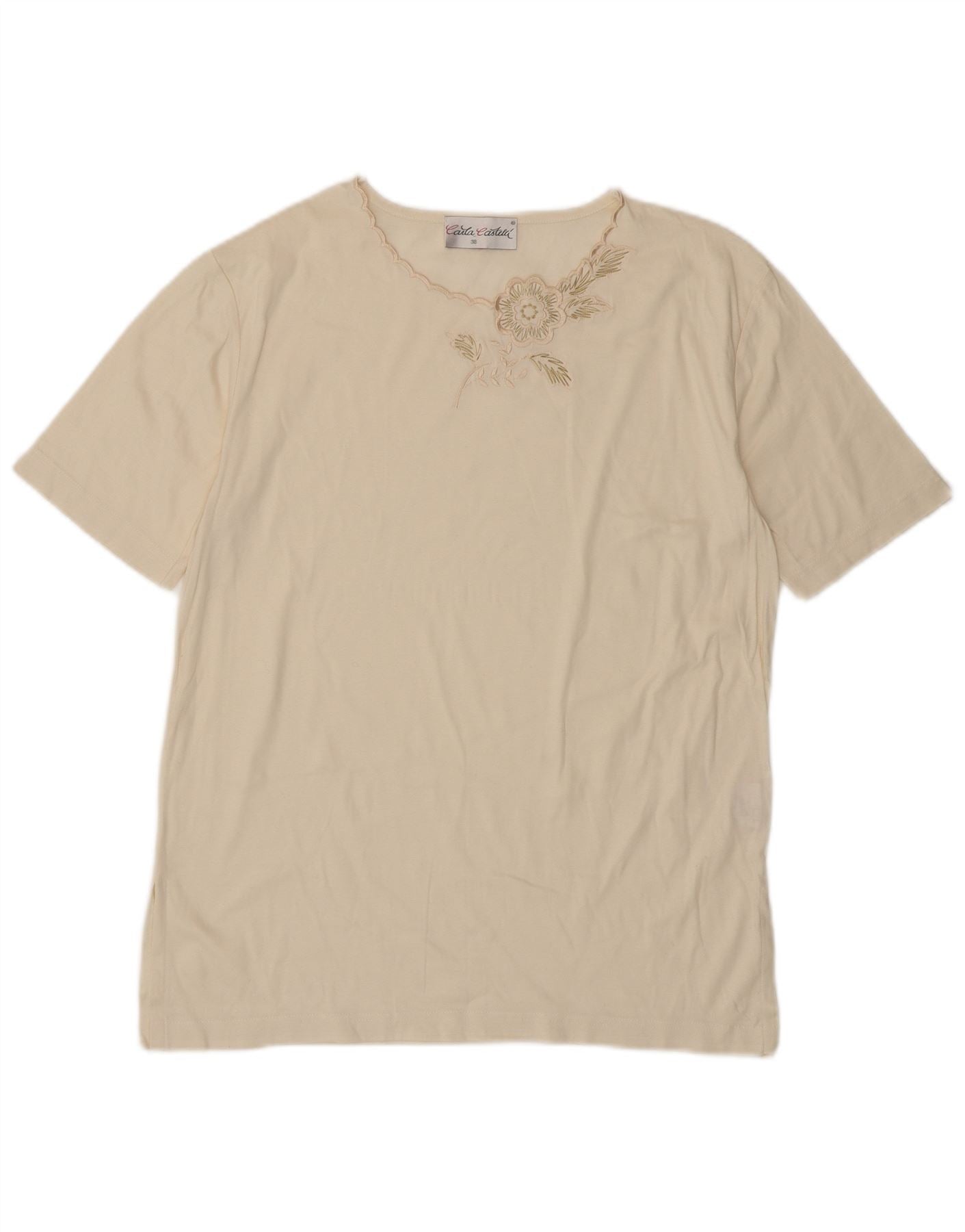 T-shirt da donna VINTAGE Top EU 38 cotone floreale bianco sporco medio